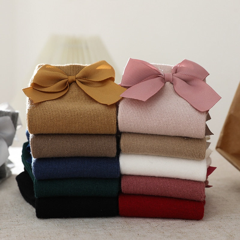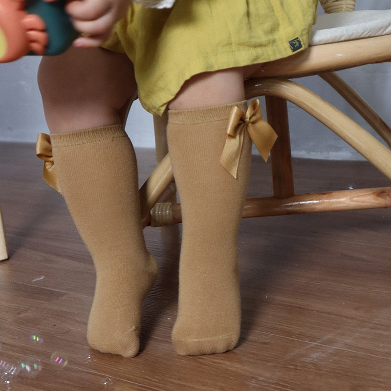 Calcetines españoles de cuello largo elásticos antideslizantes para niña con estilo español. Un accesorio indispensable para los bebés. Con estos lindos calcetines de cuello alto con pajarita para que tu bebé los use con un body o un vestido para salir, tomar hermosas fotografías siempre es una excelente opción para las madres.
