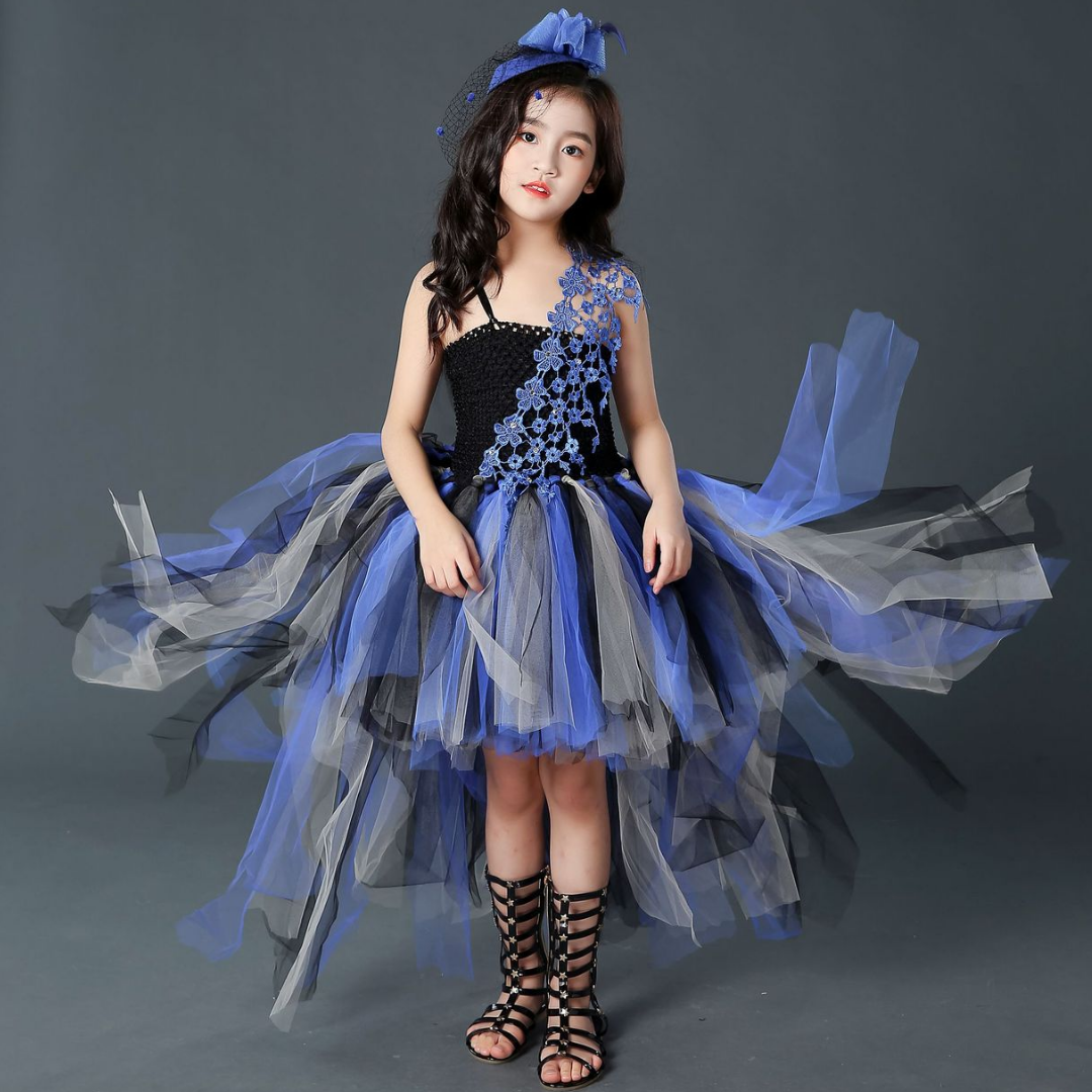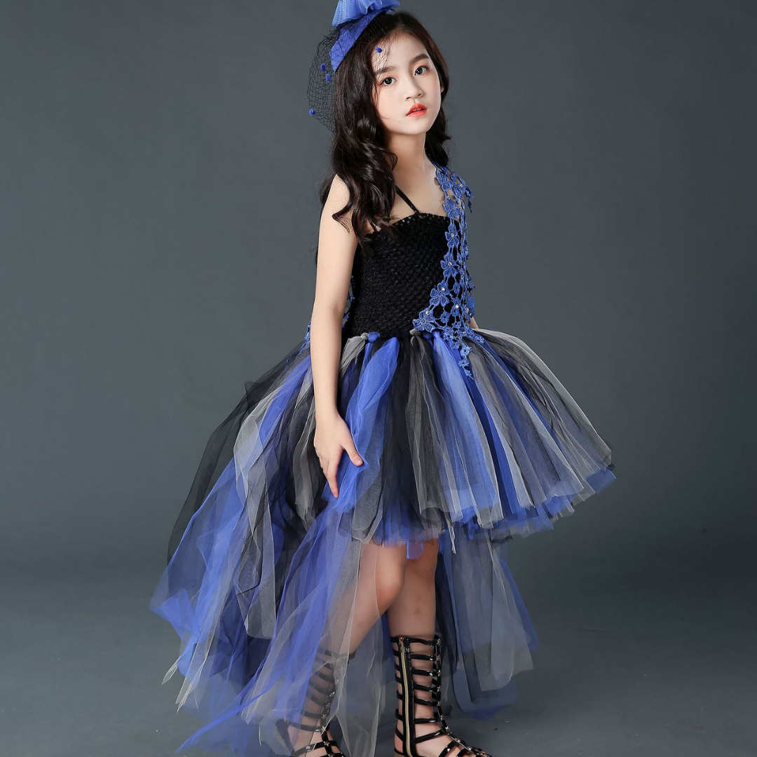 Black and Purple Halloween Party Trailing Tutu Dress
