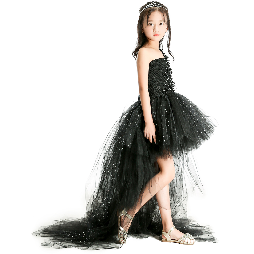 Perfect for parties, gifts, or photo shoots, this Black Starry Girls Party Trailing Tulle Dress is made of high-quality fabrics that are comfortable to wear and easy to clean. This dress will make your little girl look beautiful and charming at her next party.