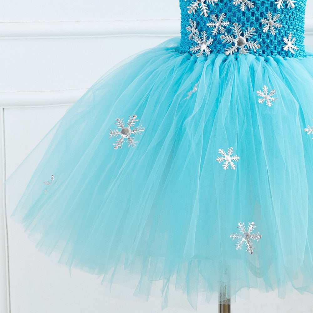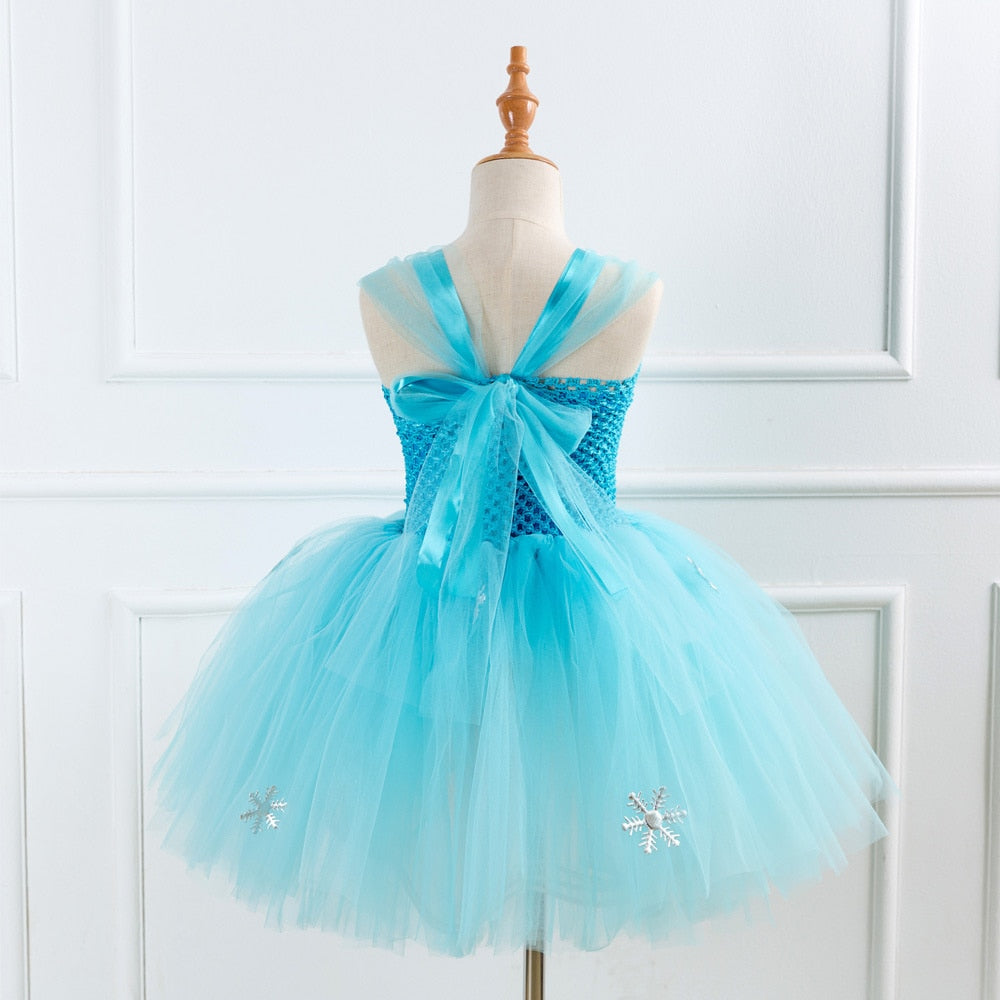Conjunto de vestido tutú de disfraz de princesa de hielo con copos de nieve y top de crochet