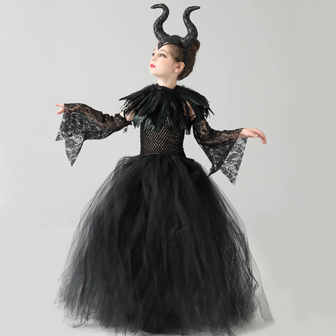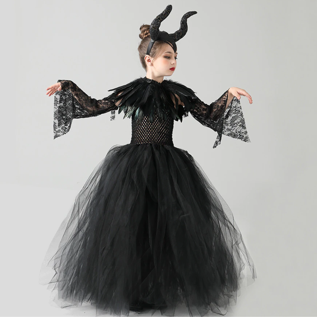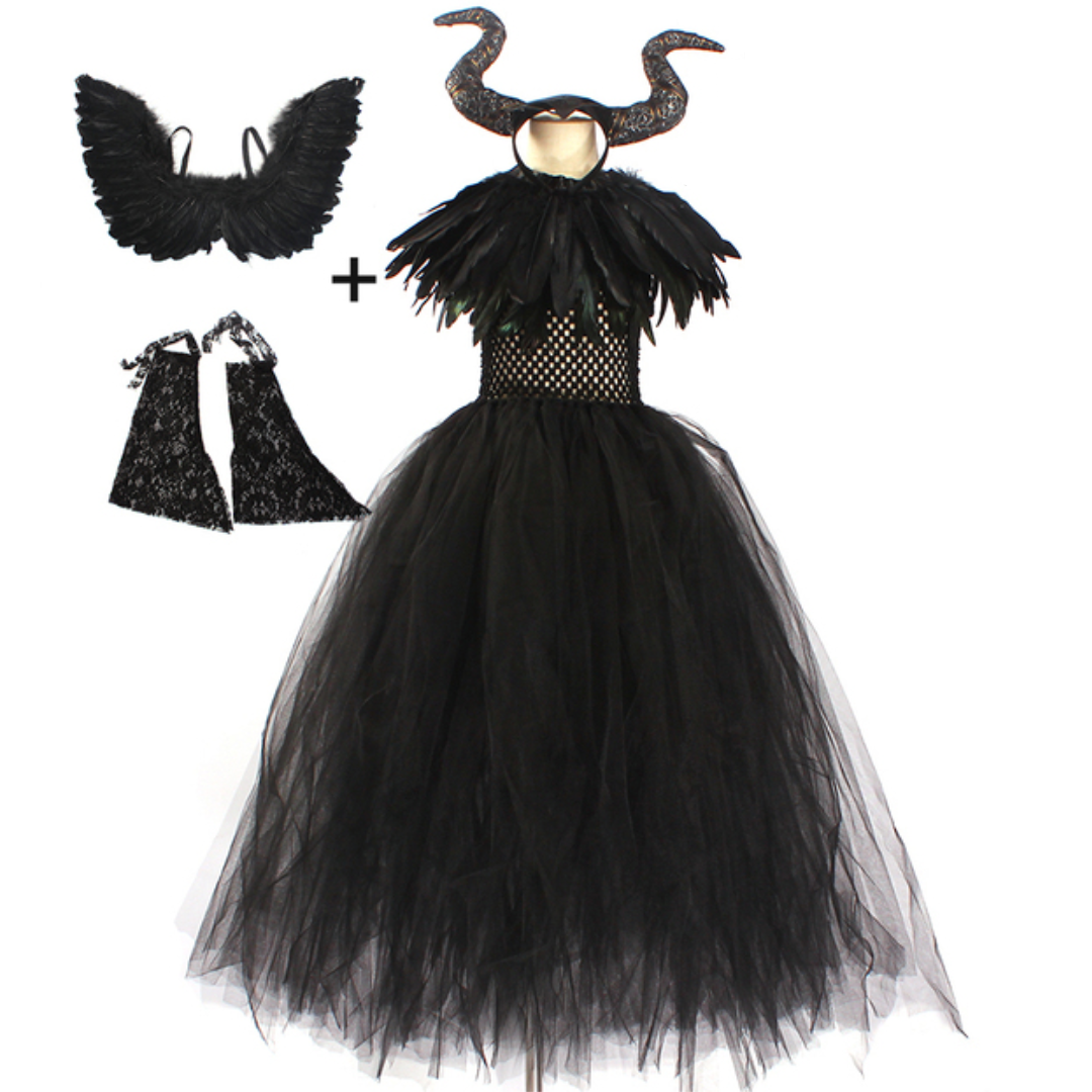 Evil Witch Black Halloween Costume Tulle Dress Set