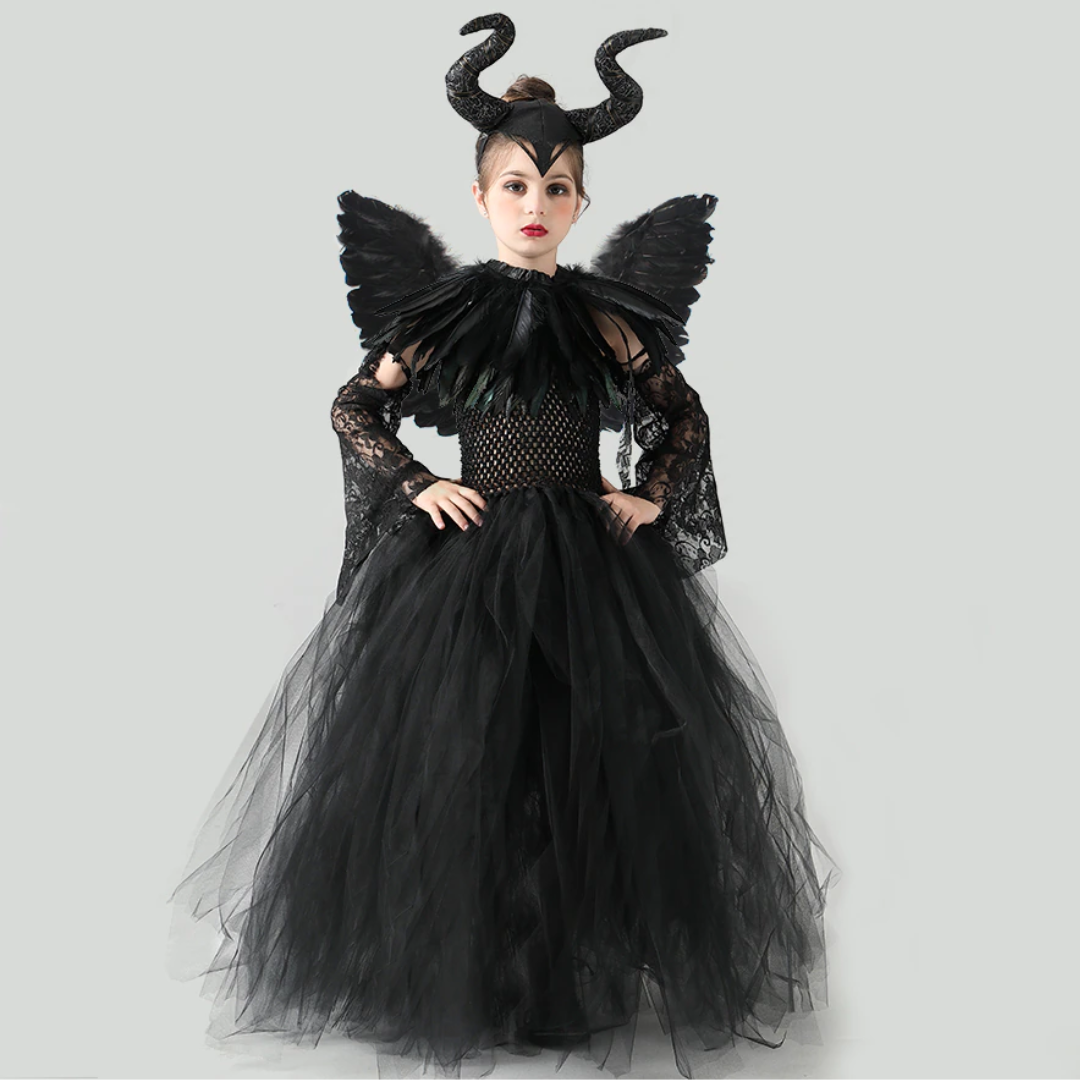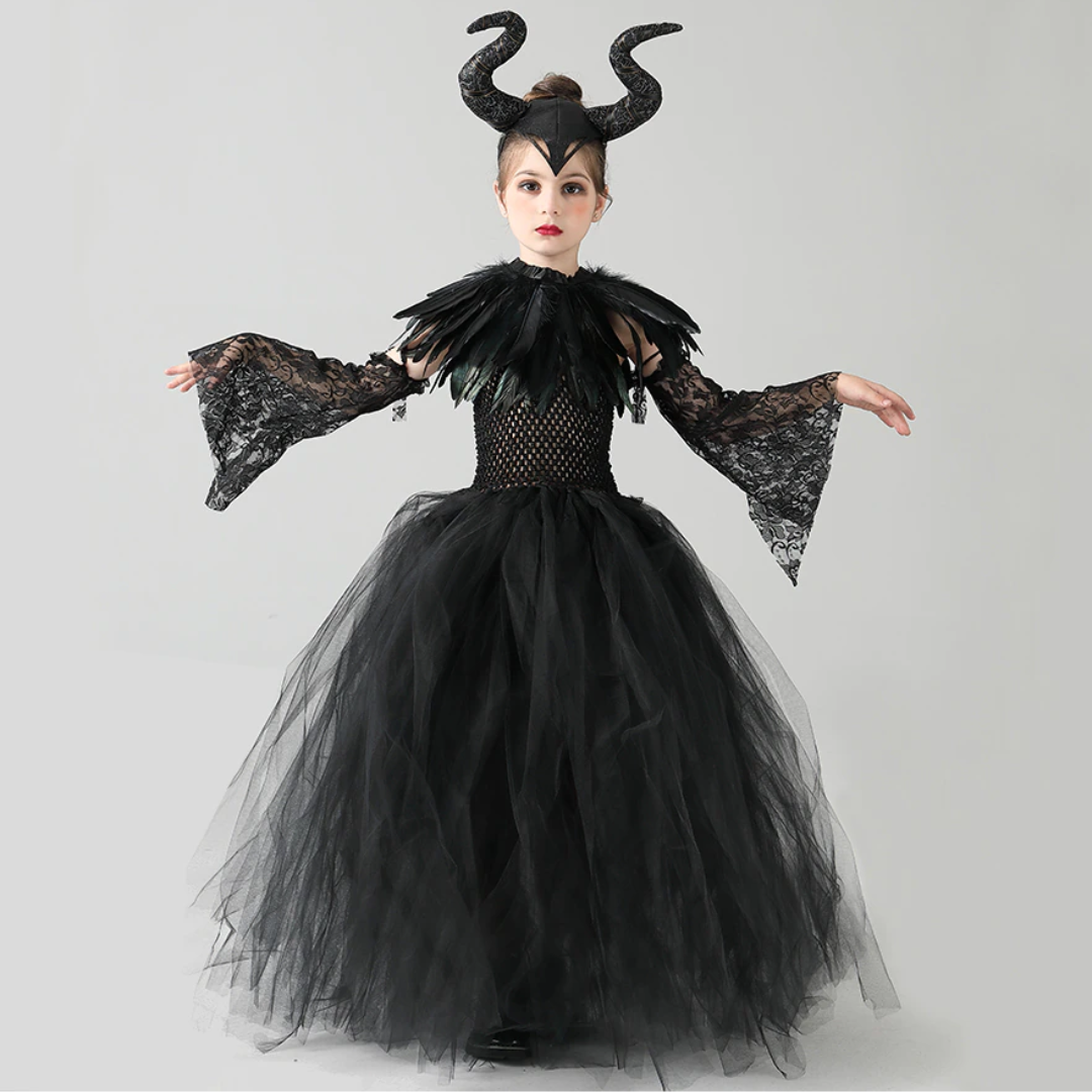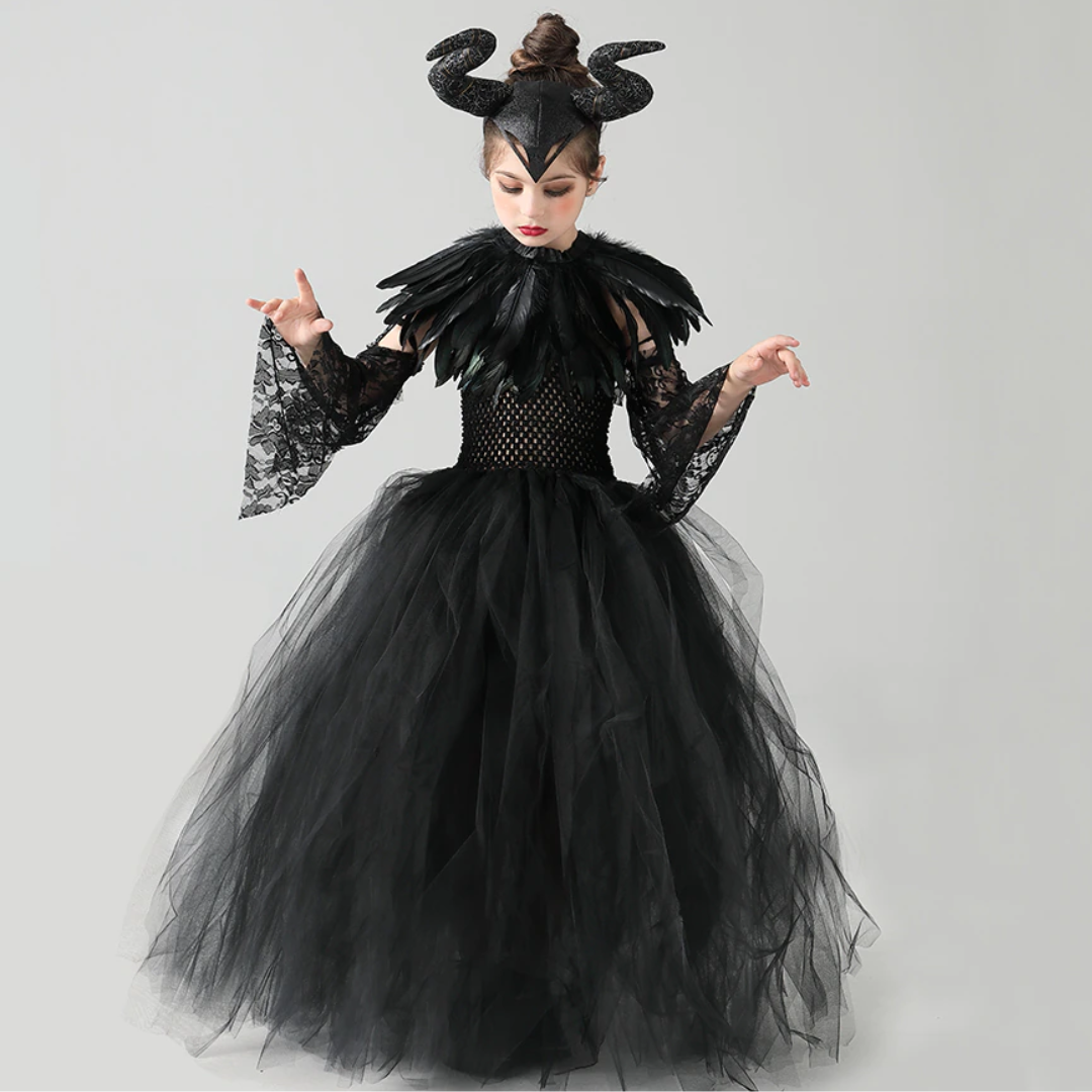 Evil Witch Black Halloween Costume Tulle Dress Set