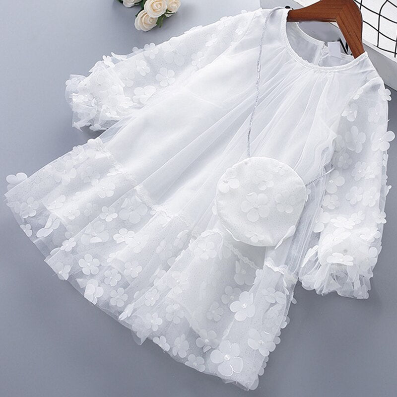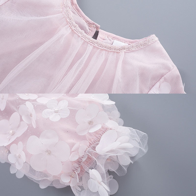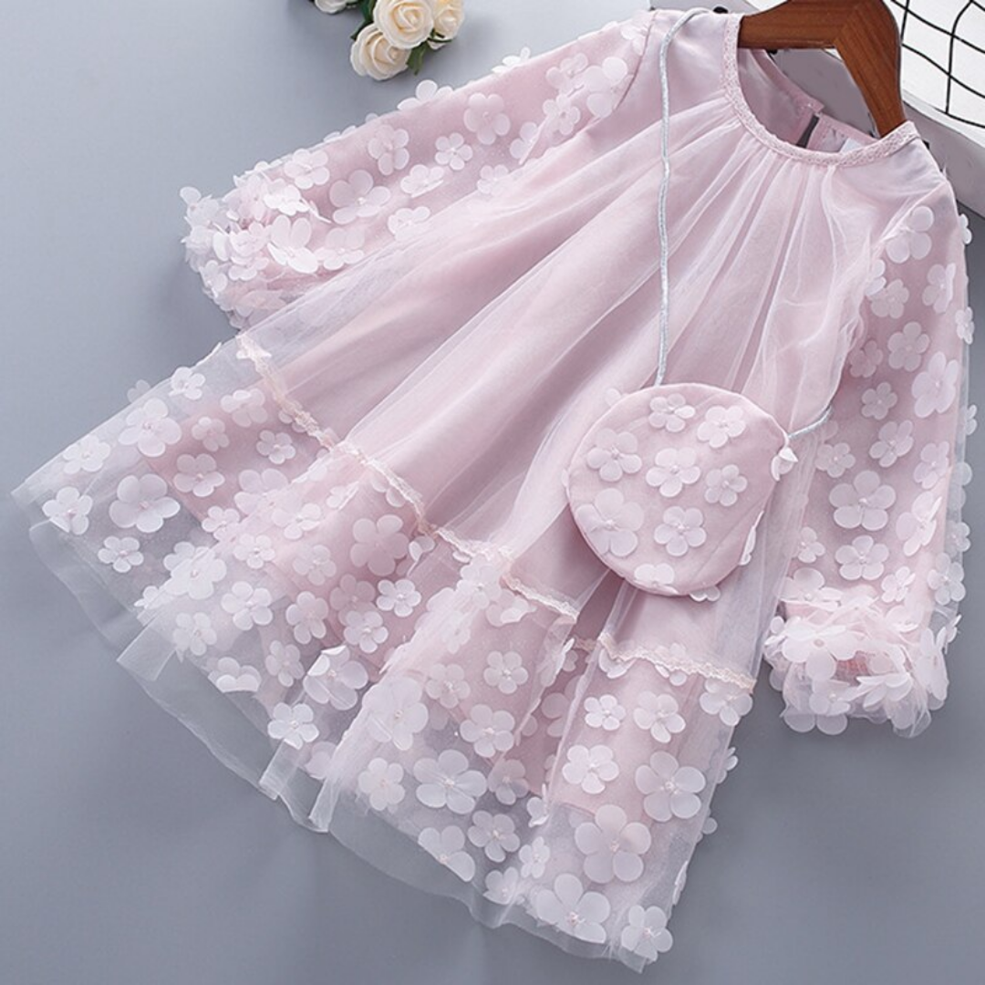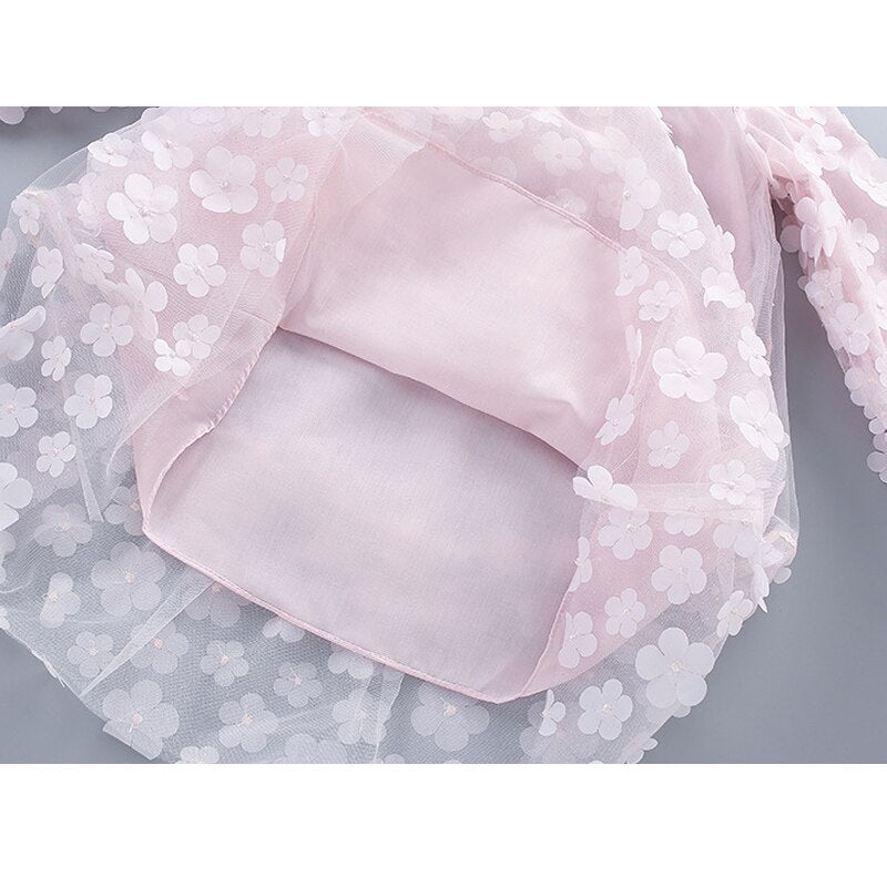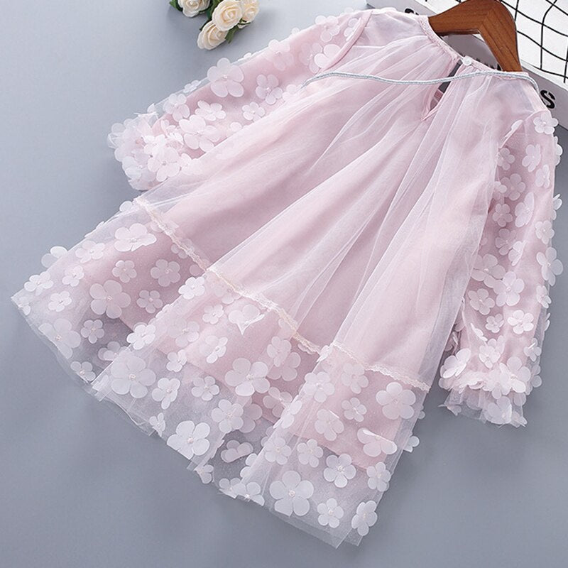 Floral Design Multi-Layer Long Sleeve Girl Mesh Dress