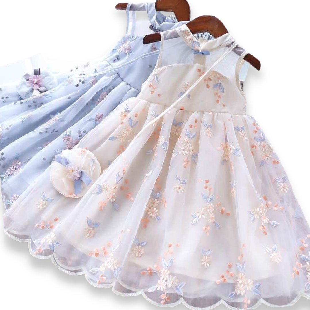 Este vestido de verano de princesa de malla en capas con bordado floral es un vestido sencillo con un diseño sin mangas y cuello chino. Confeccionado con mezclas de tejidos súper suaves y transpirables . Este precioso vestido es perfecto para llevar cuando tus hijas se van de vacaciones o asisten a una fiesta.