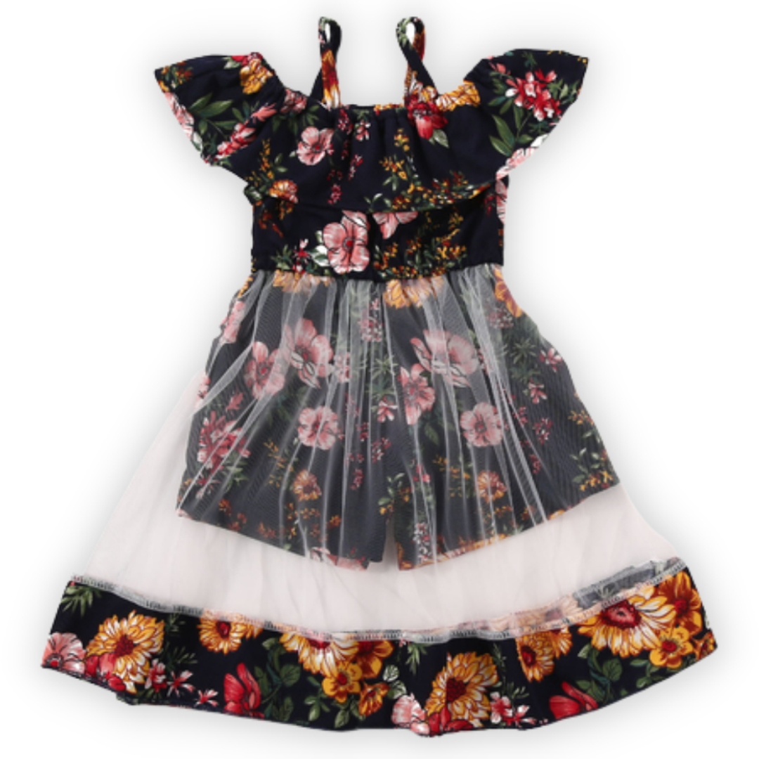 Este vestido de verano para niña con falda transparente y mameluco interior floral es el vestido perfecto para las niñas. Una atractiva ropa de verano para tu princesa. Cómodo conjunto de fiesta de verano para niñas.