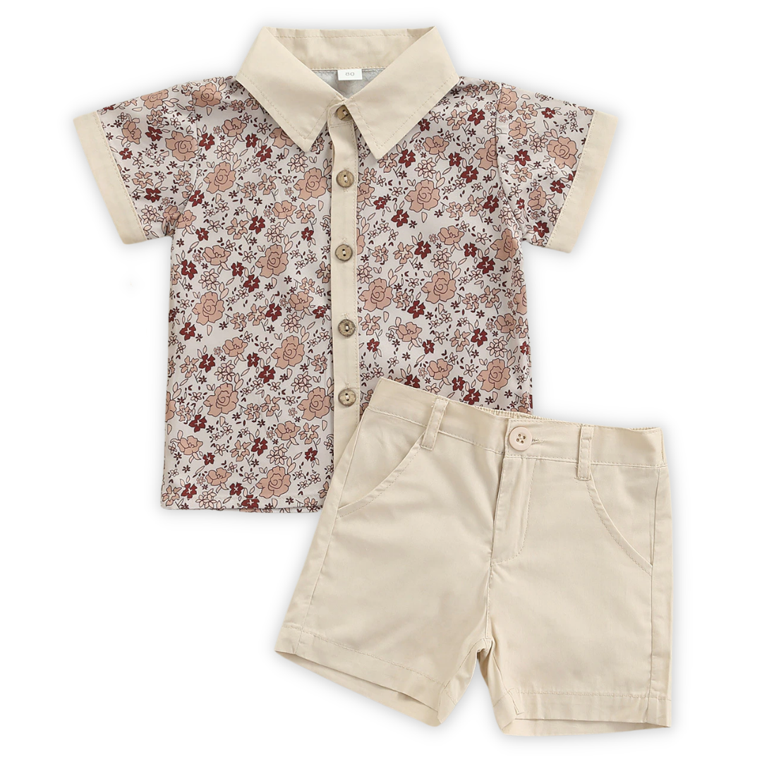 Traje a juego para hermanos de moda de verano con estampados florales