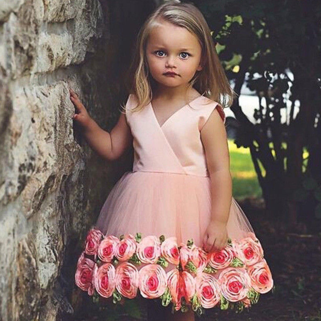 Vestido de fiesta formal para niña con gradas y cinta con forma floral