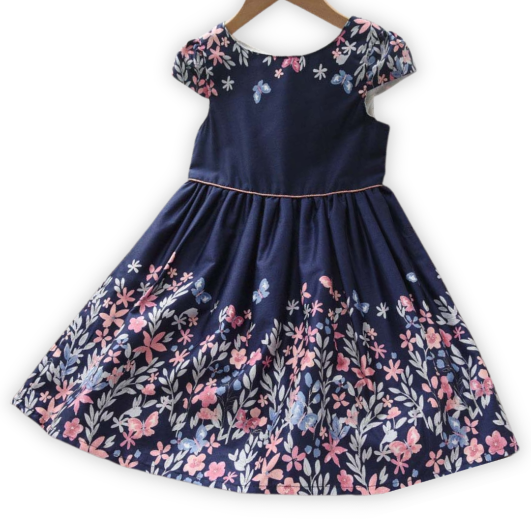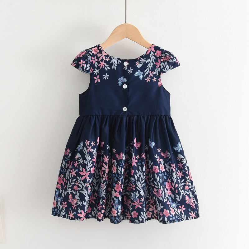 Vestido de sol de verano para niña con flores y mariposas de jardín