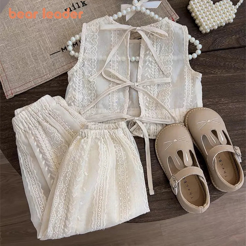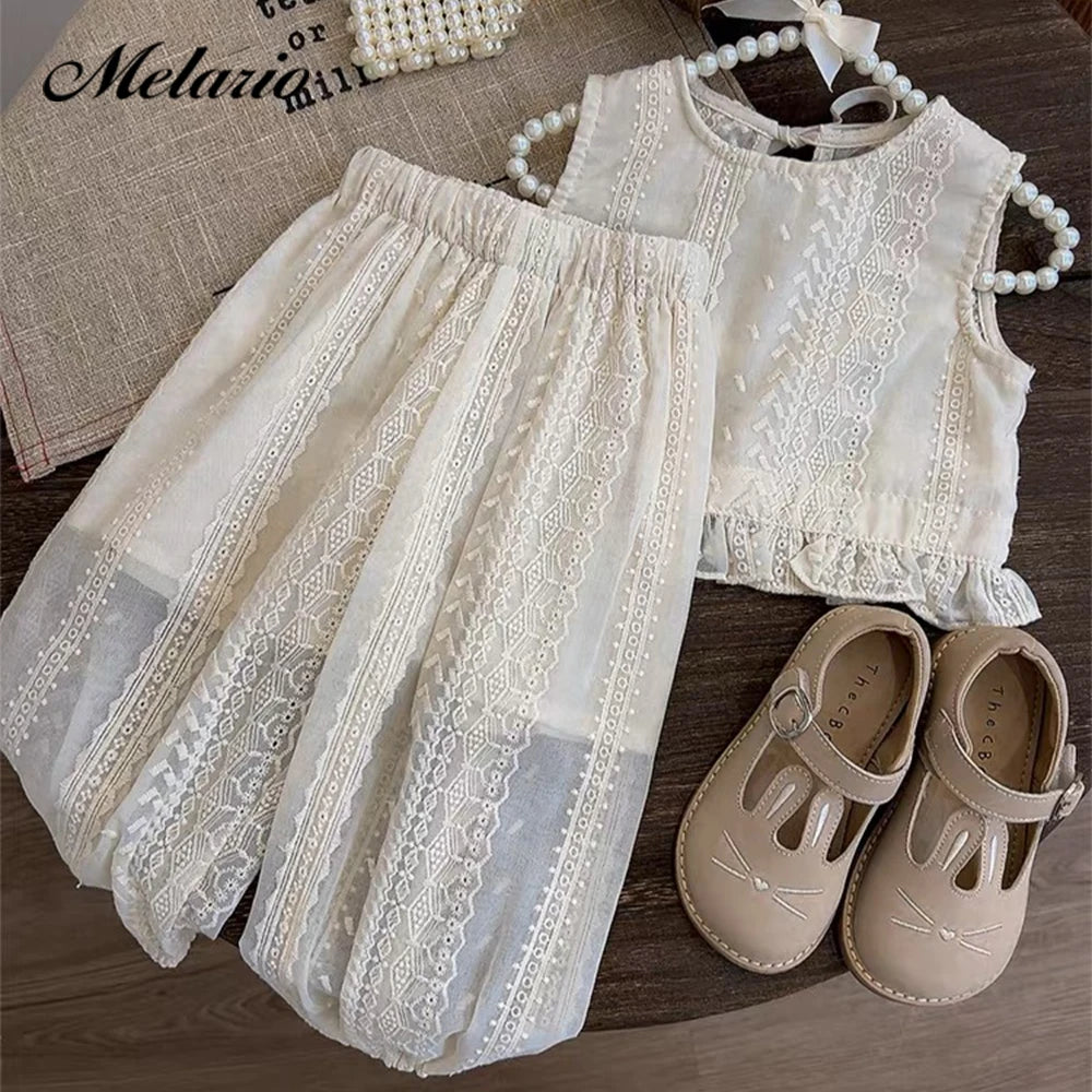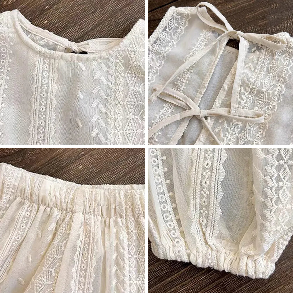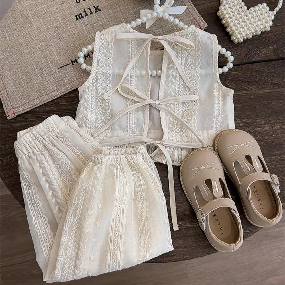 Conjunto de ropa de encaje hueco de verano para niñas