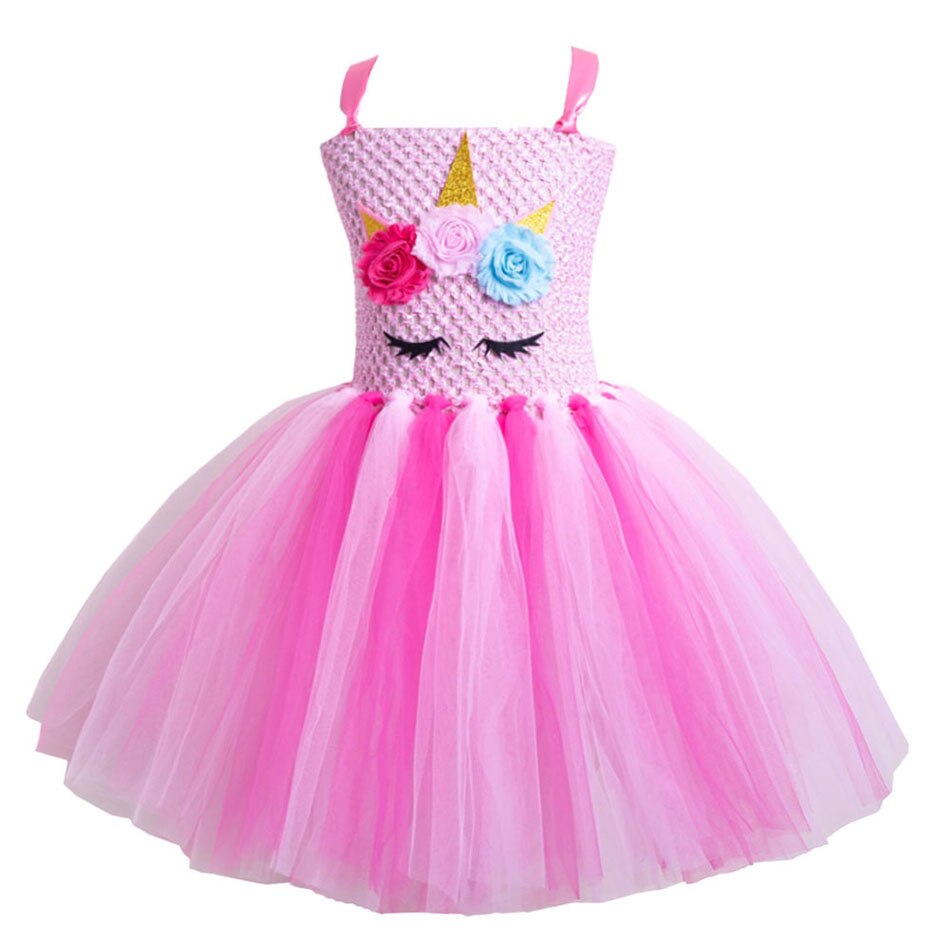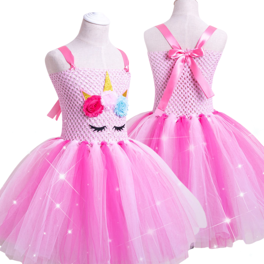 Vestido de tul de fiesta para niñas con unicornio y luz LED brillante