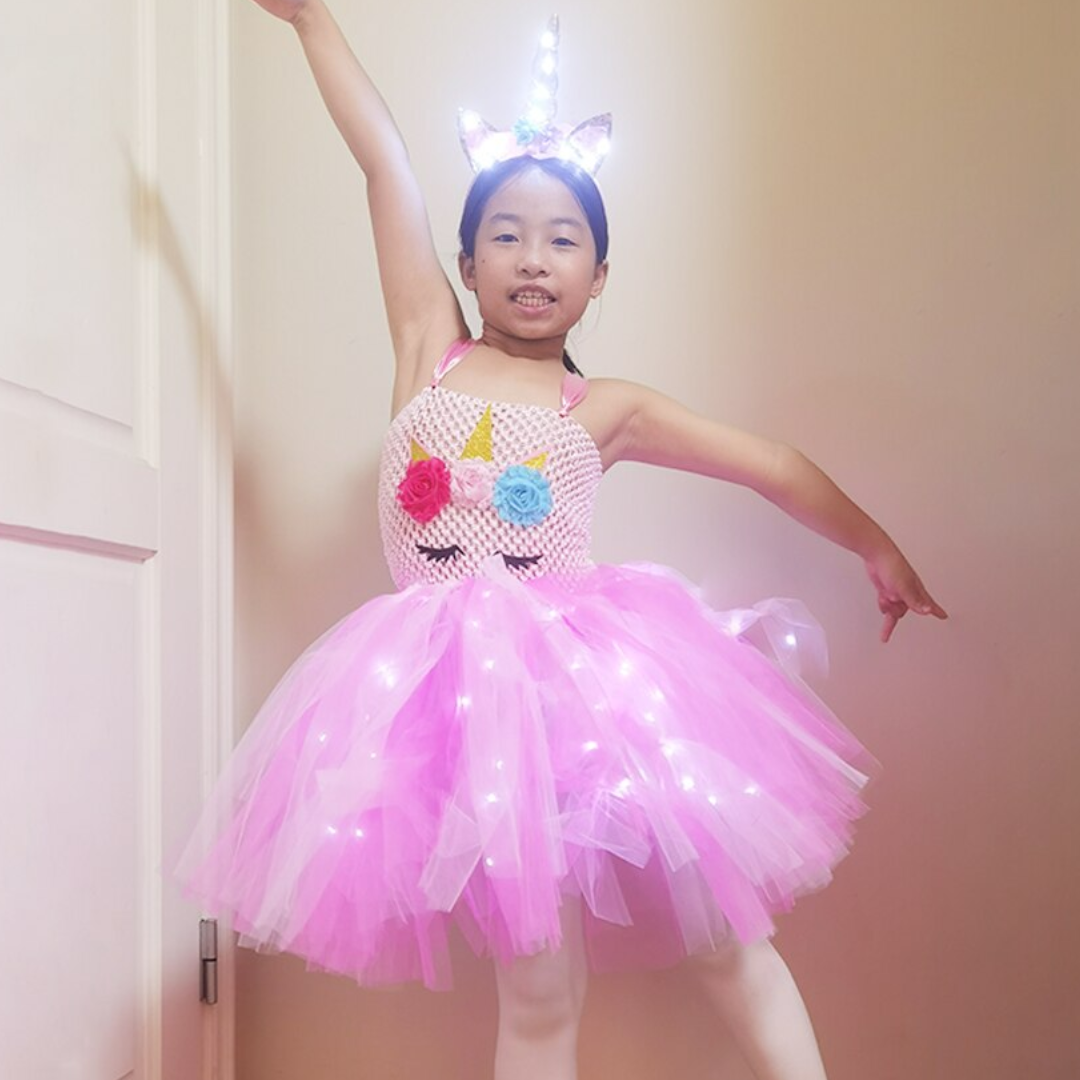 Glowing LED Light Unicorn Girls Party Tulle Dress