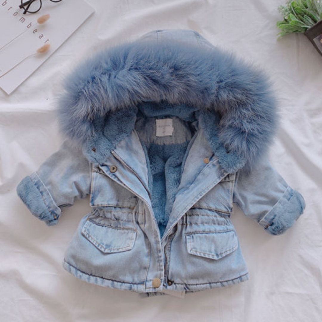 El invierno es una de las mejores estaciones para ir con estilo y también a la moda. Haga que sus niñas estén a la moda y al mismo tiempo estén protegidas del frío con esta chaqueta vaquera de piel con capucha.