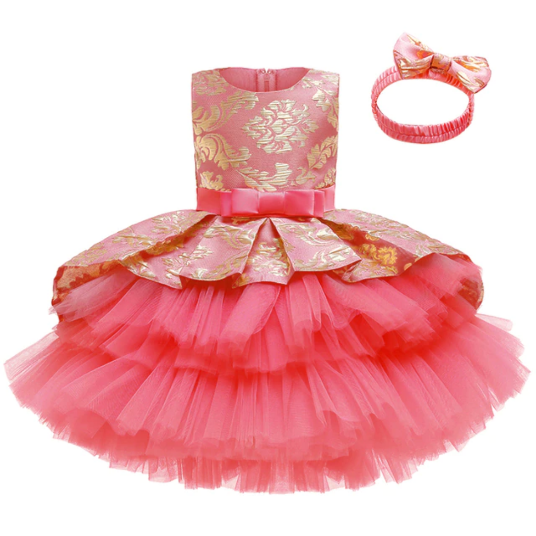 Este conjunto de vestido y diadema para niña con flores de boda con tutú en capas es una excelente opción para la fiesta de cualquier niña u otros eventos próximos. Su tela suave y su encantador diseño combinarán perfectamente con trajes de cumpleaños o vestidos de niña de las flores para bodas.