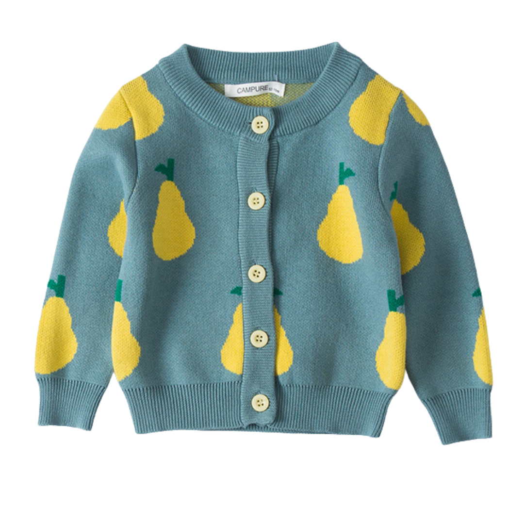 Este cárdigan de punto con diseño de estampado de fruta de pera es un suéter increíble para niñas, está hecho de material de alta calidad, tiene una textura cálida y suave y brinda una gran comodidad para sus hijos durante el frío invierno.