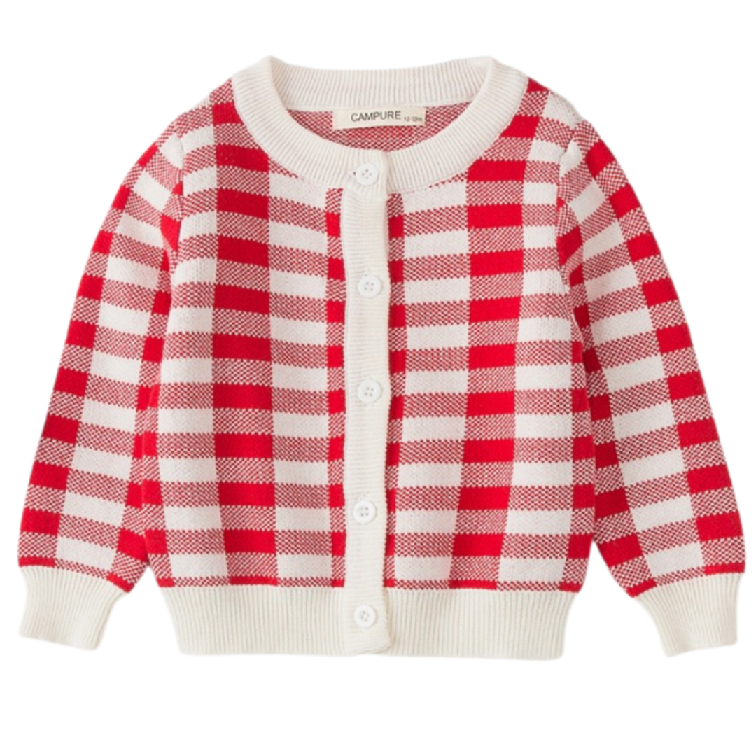 Este cárdigan de punto con diseño a cuadros es un suéter de punto moderno para niñas, confeccionado con un material suave y de buena calidad. Este suéter tiene un estampado de diseño a cuadros que le da a tu niña un adorable look de moda.