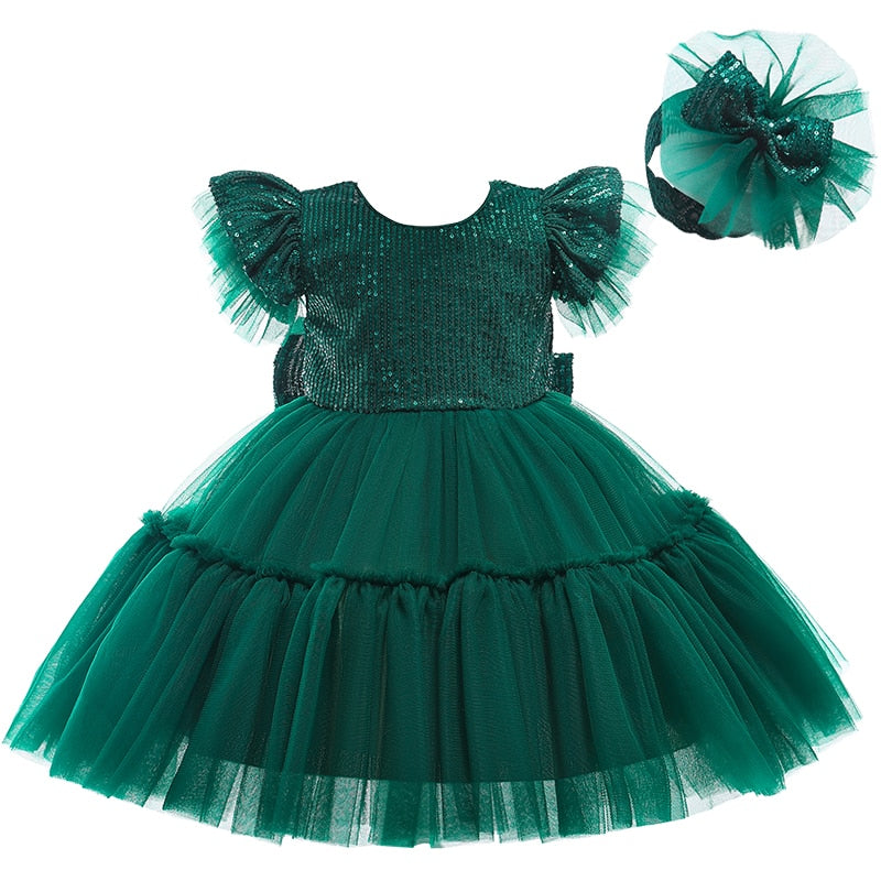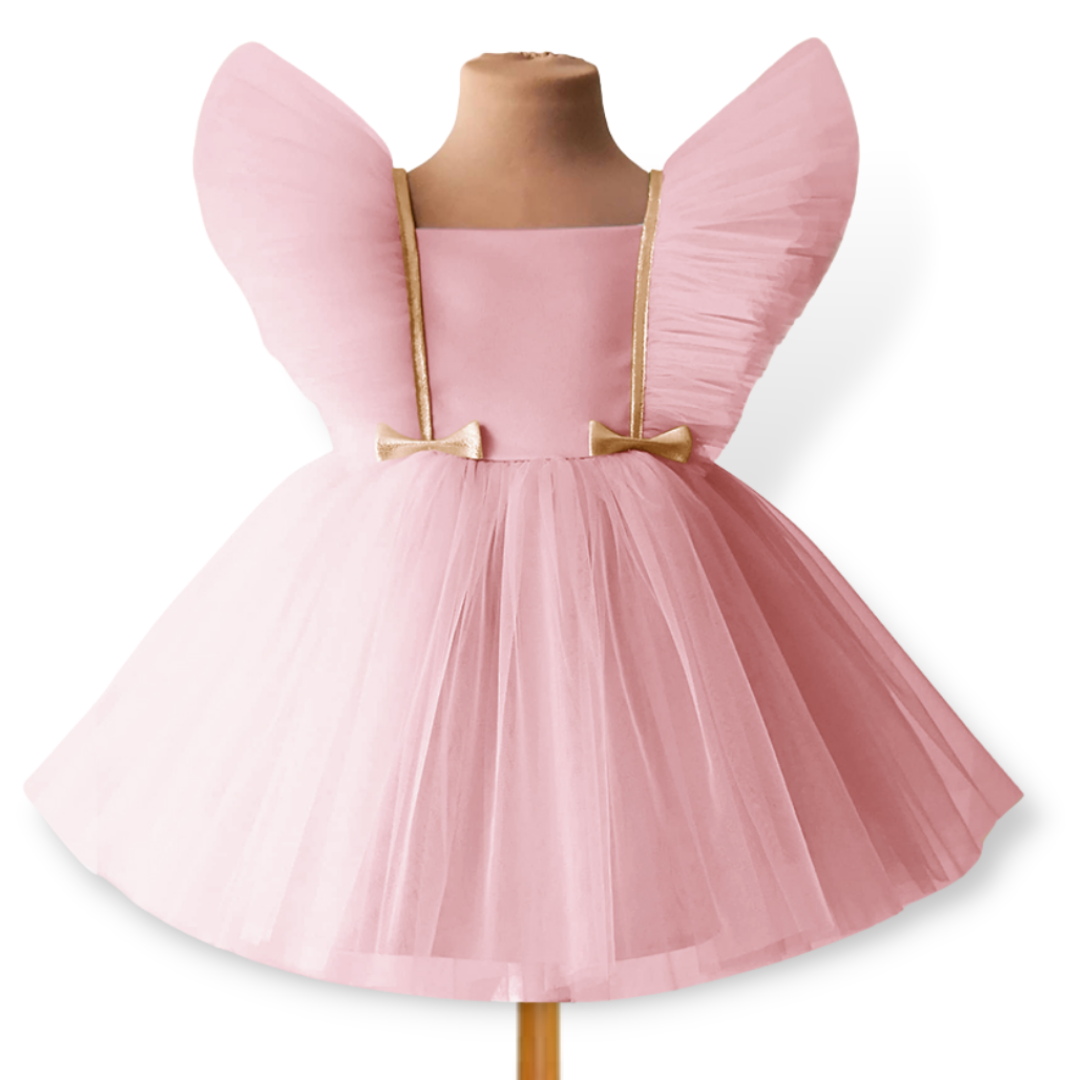 Plain Puffy Mesh Sleeves Baby Girl Formal Party Dress