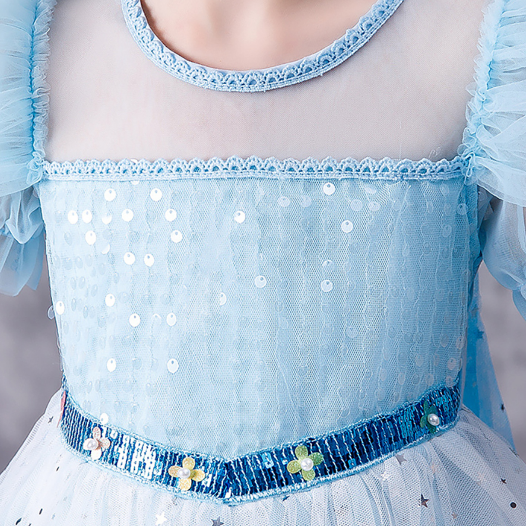 Ruffle Puff Sleeves and Sequins Snow Princess Costume Dress