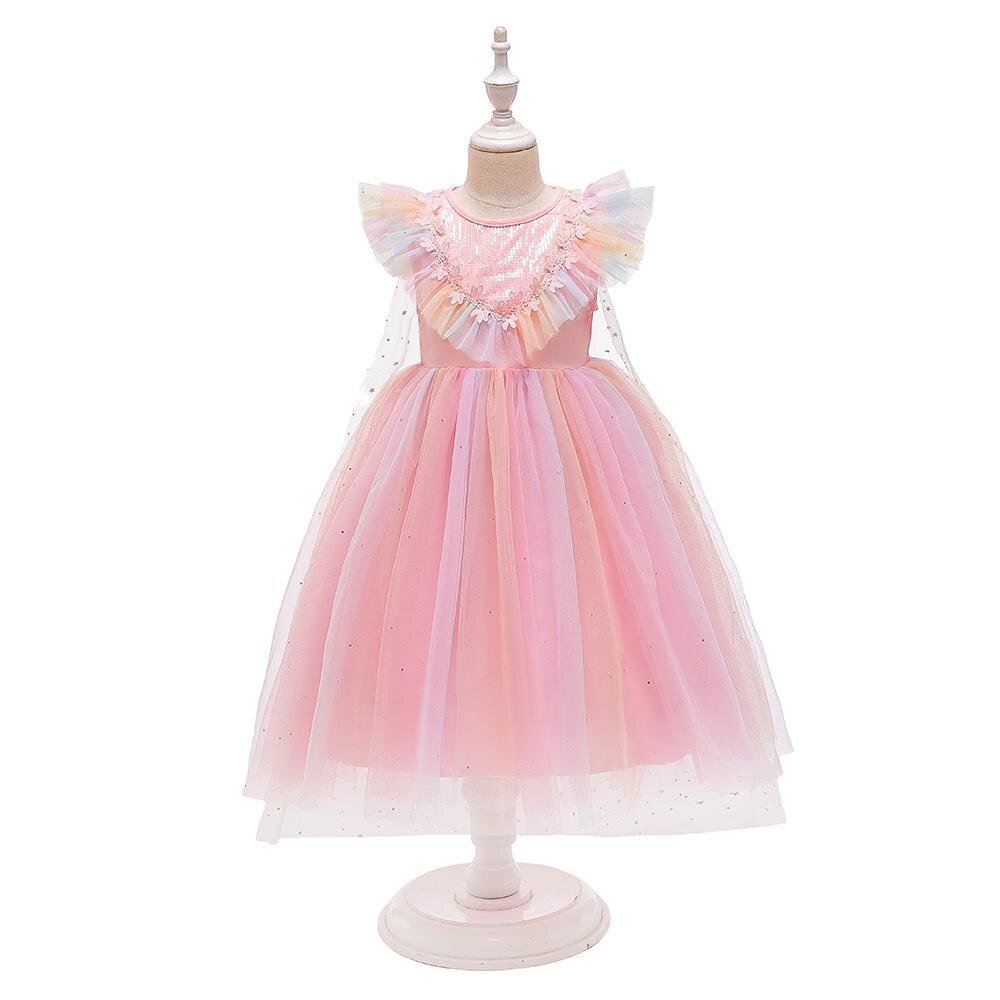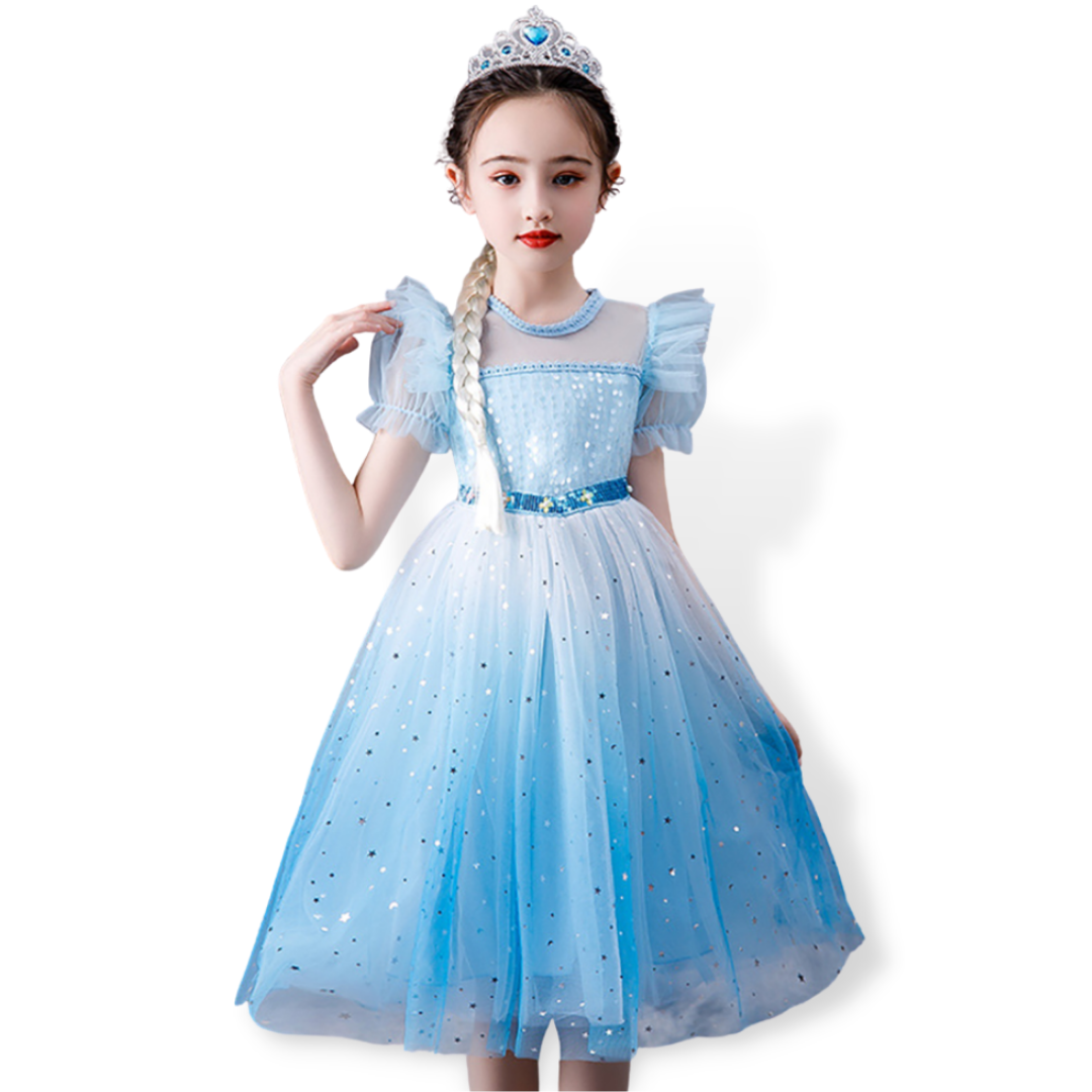 Vestido de disfraz de princesa de nieve con lentejuelas y mangas abullonadas con volantes