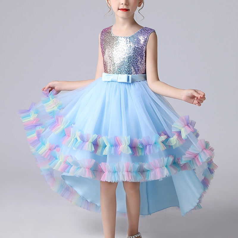 Este vestido de princesa con volantes en capas de color caramelo brillante es perfecto para usarlo en muchas ocasiones, como bodas, fiestas formales, vestidos de domingo e incluso para la celebración del cumpleaños de su niña.