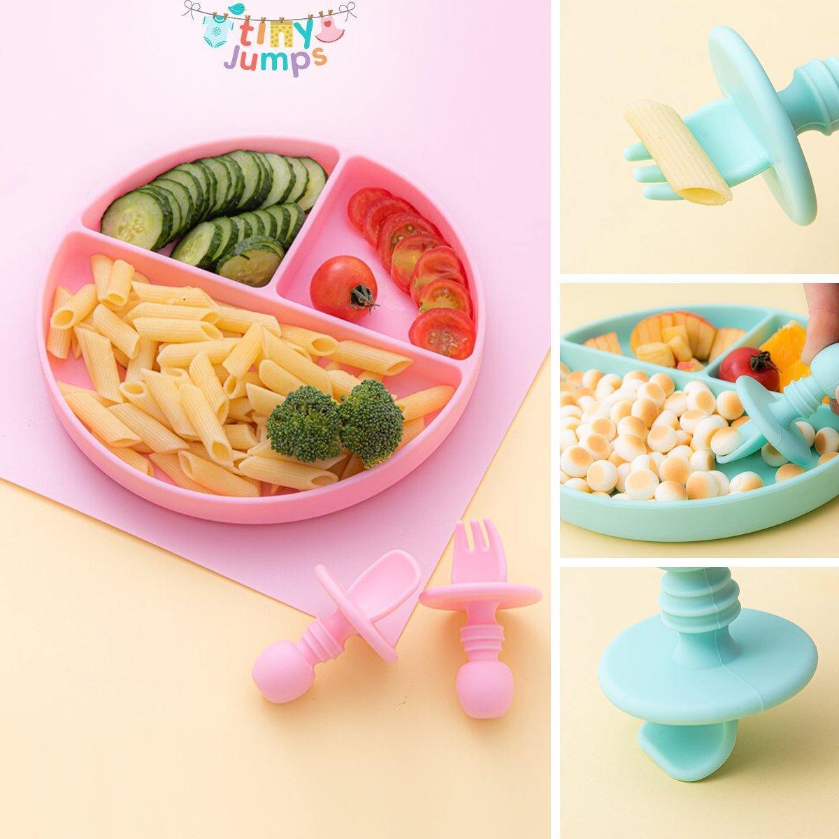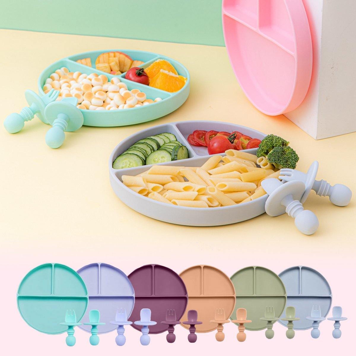 - Estos platos son ideales para darle a tu bebé una comida en porciones y la confianza para comer solo