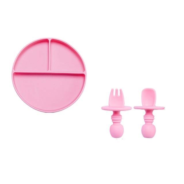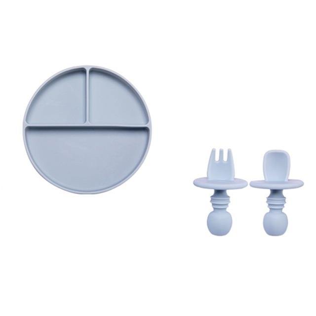 1 juego de platos de silicona para bebés (plato, cuchara y tenedor de silicona)