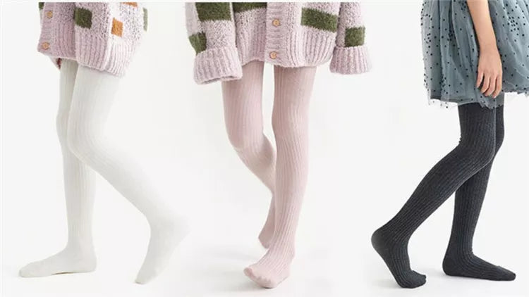 Medias de punto de algodón liso para niña - Leggings acogedores para niños
