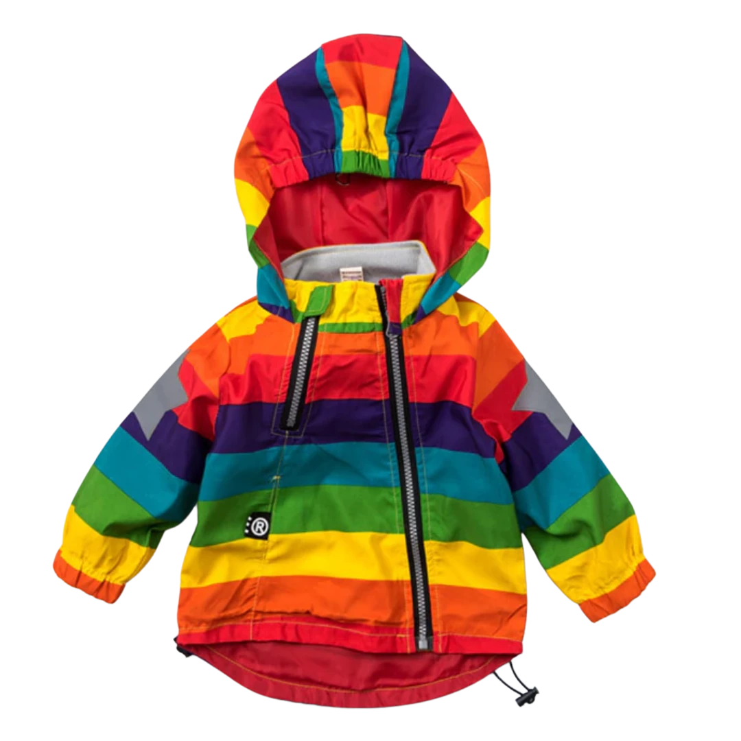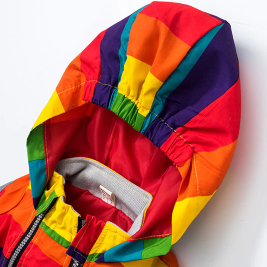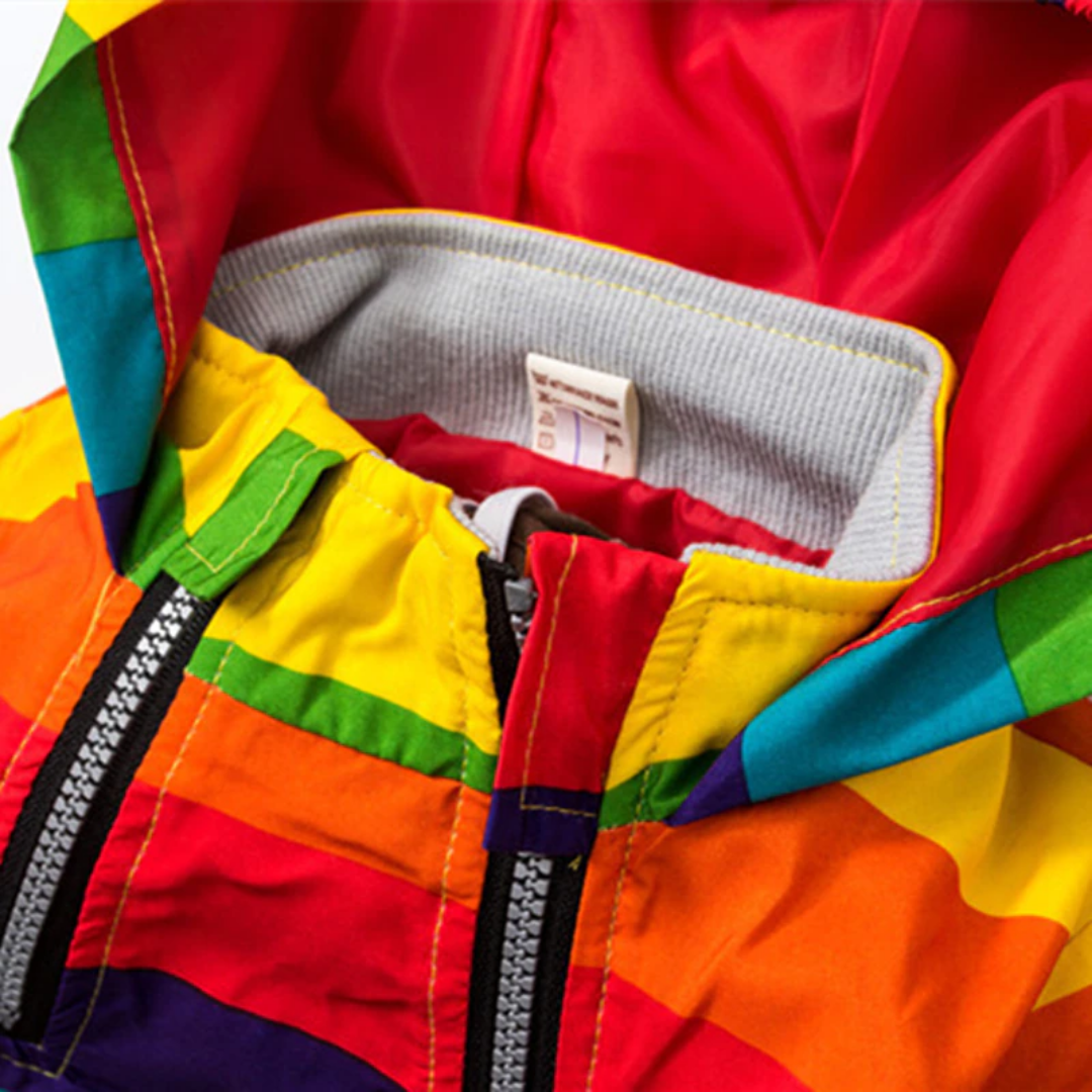 Chaqueta cortavientos con capucha y rayas arcoíris de estrellas