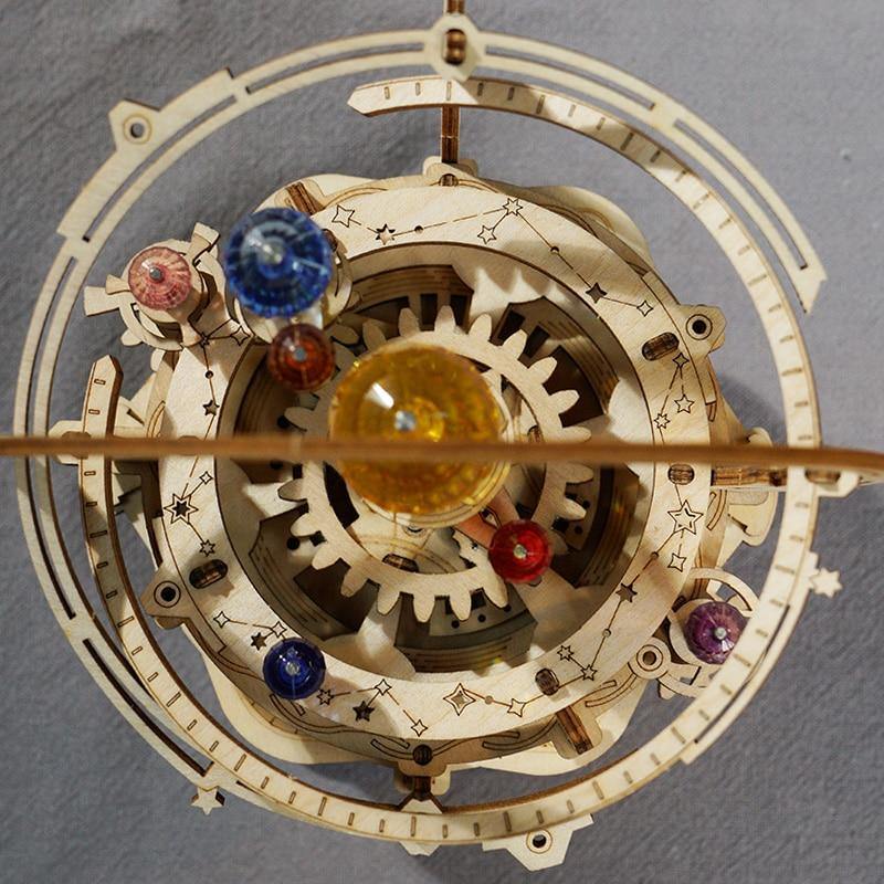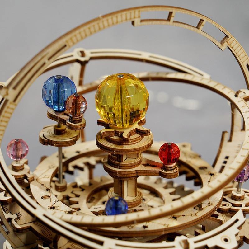 - Las órbitas de madera presentan diferentes patrones geométricos.