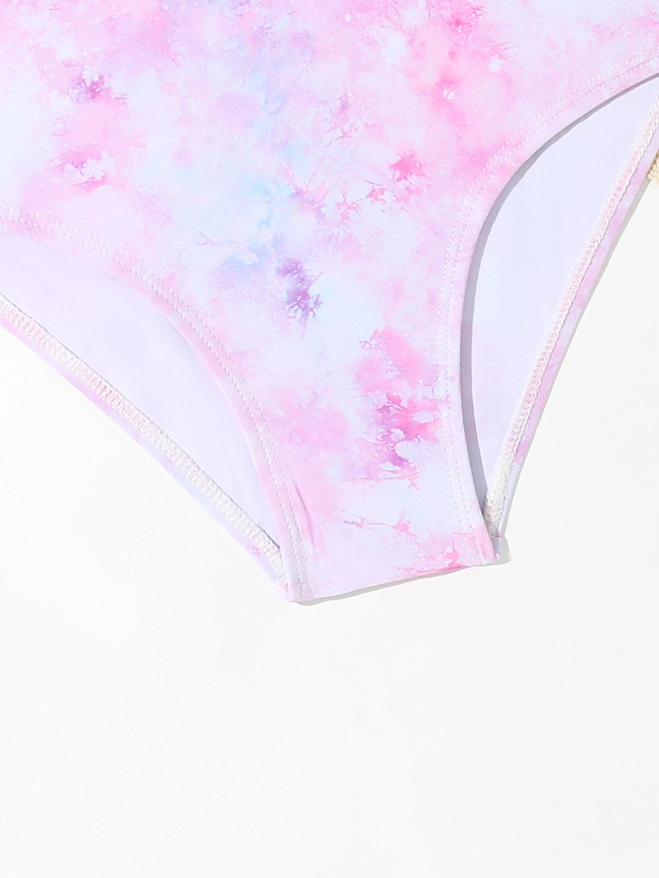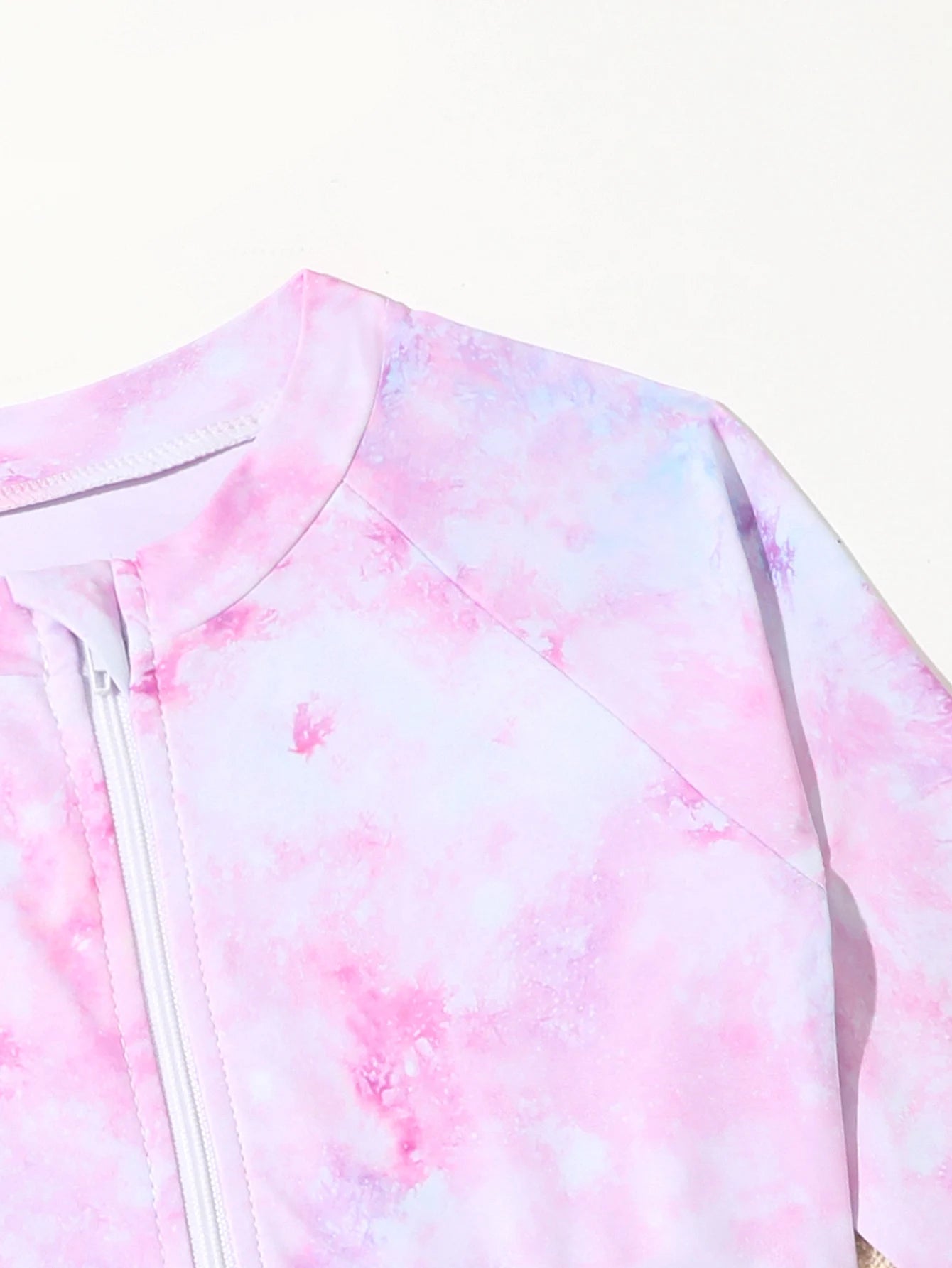 Girl's Long-Sleeved Tie-Dye One-Piece Swimsuit