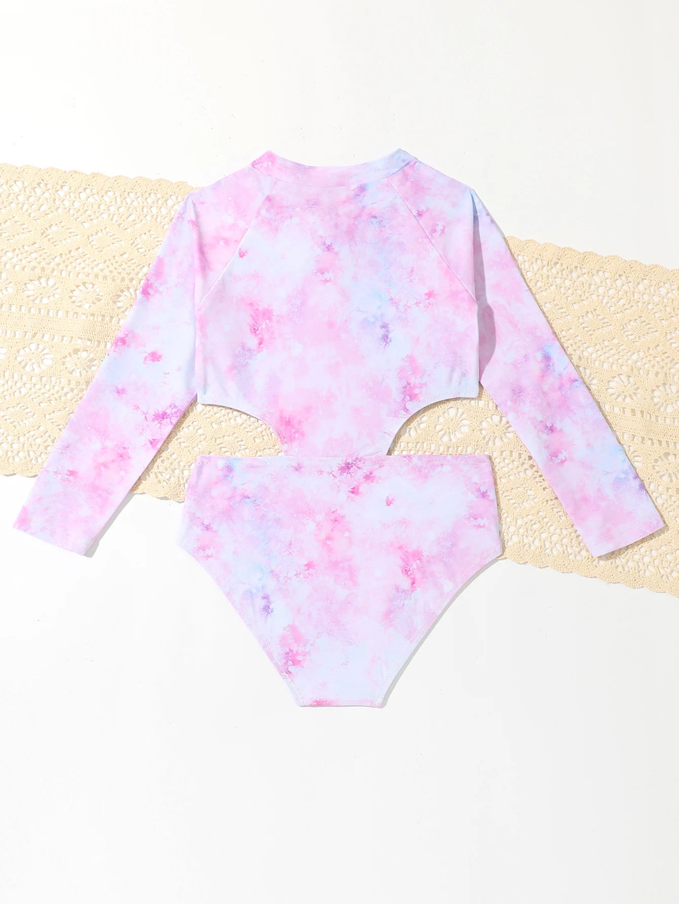 Introducing Our Girl's Long-Sleeved Tie-Dye One-Piece Swimsuit: Dive into Summer with Style!