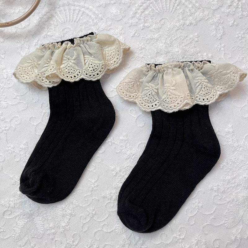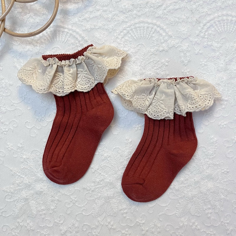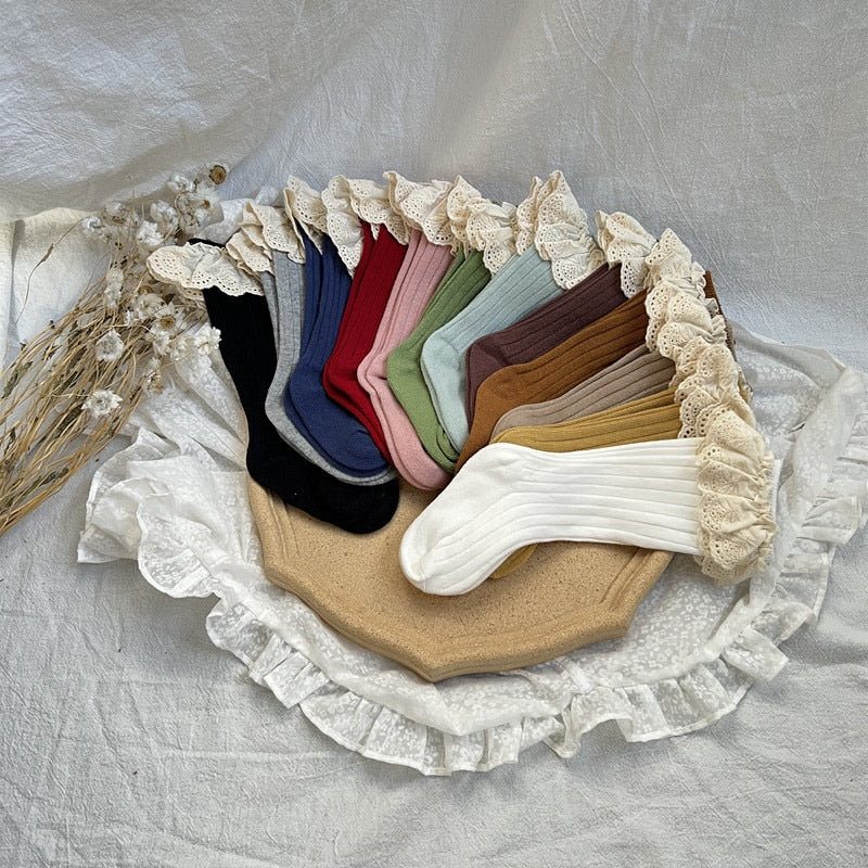 Children's socks with lace are extremely cute for babies, making funny socks to help them become more lovely and pretty. With 100% Cotton material, that means you can use it for your baby at any time of spring, summer, autumn, and winter.