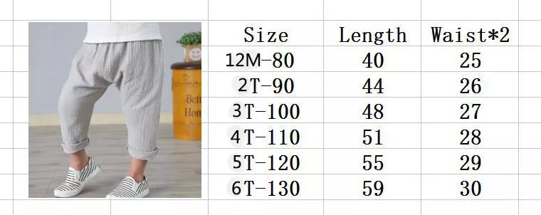 Elevate your child's summer wardrobe with our stylish Solid Color Pants. Crafted with a blend of comfortable Linen and COTTON, these ankle-length pants are perfect for boys and girls aged 12 months to 6 years.