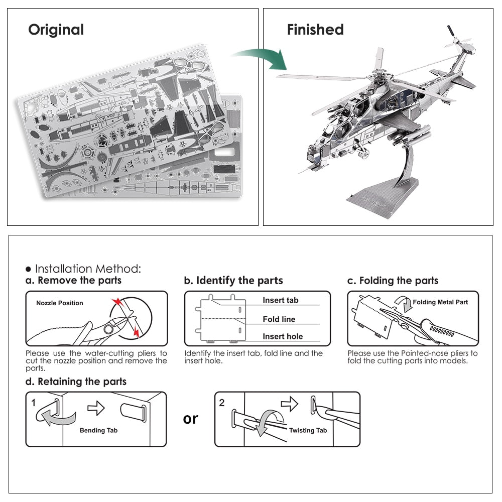 Rompecabezas de metal 3D | Helicóptero Wuzhi 10 | juguetes educativos