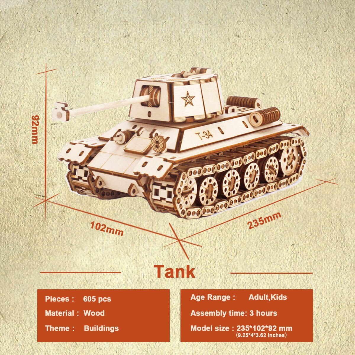 Rompecabezas de madera 3D | Tanque | Regalo para tus hijos