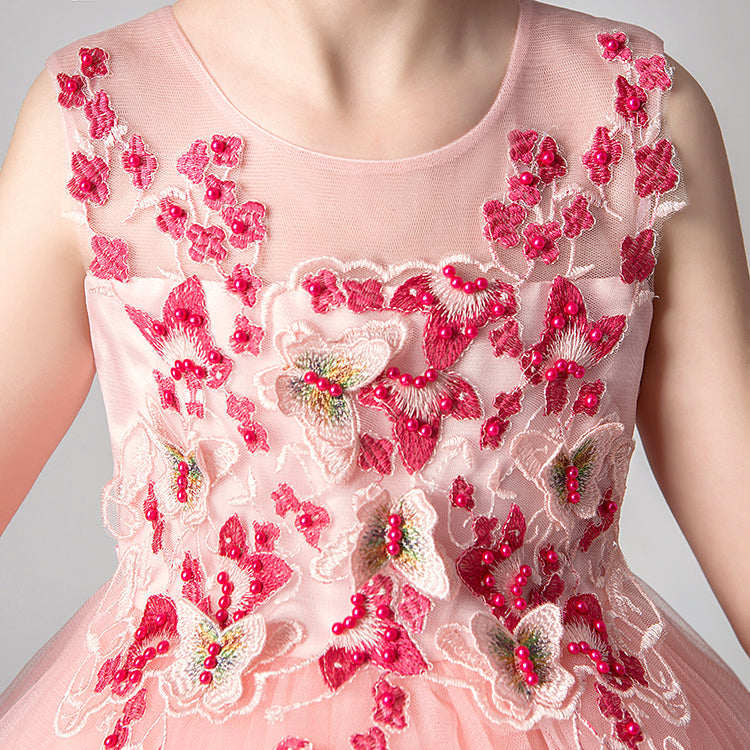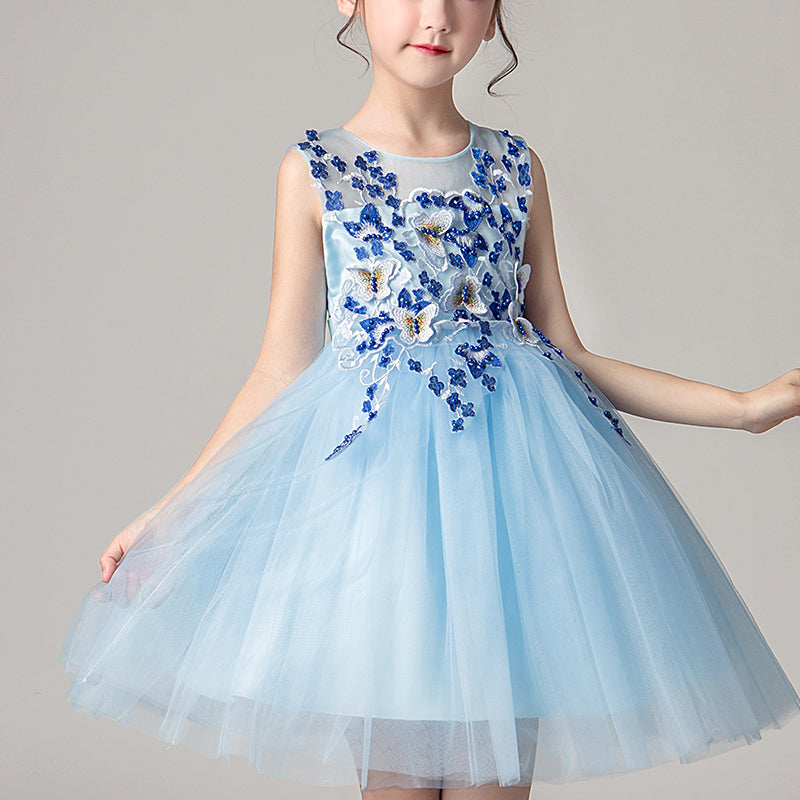 - Vestido hasta la rodilla con diseño de mariposas bordadas.