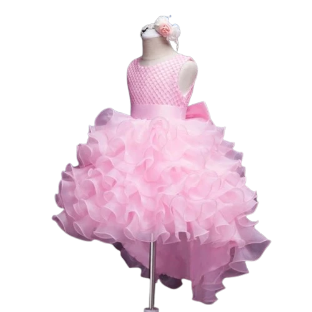 Long Back Puffy Ruffle Dress