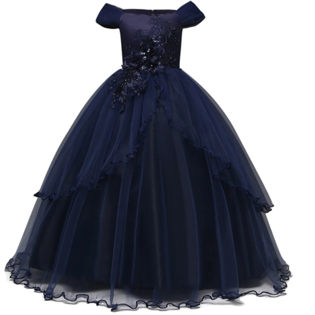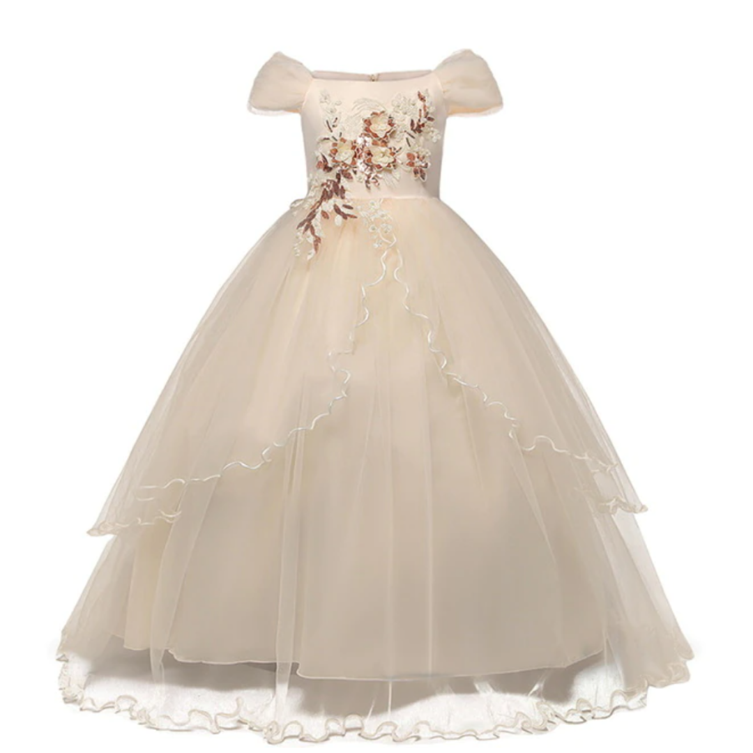 Long Embroidered Flower Girl Wedding Dress