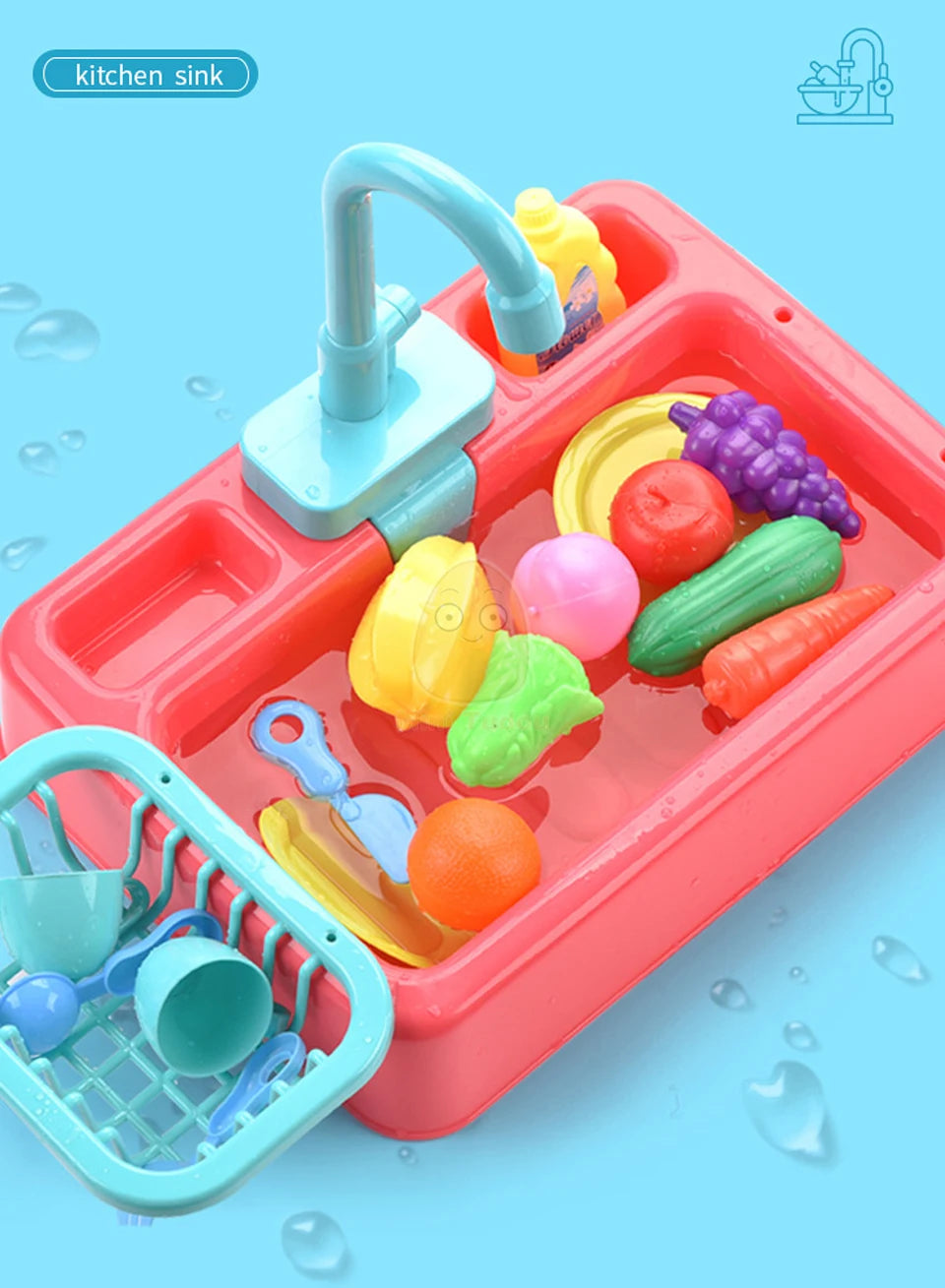 Juego de fregadero de cocina de plástico: kit de juego de simulación para niños