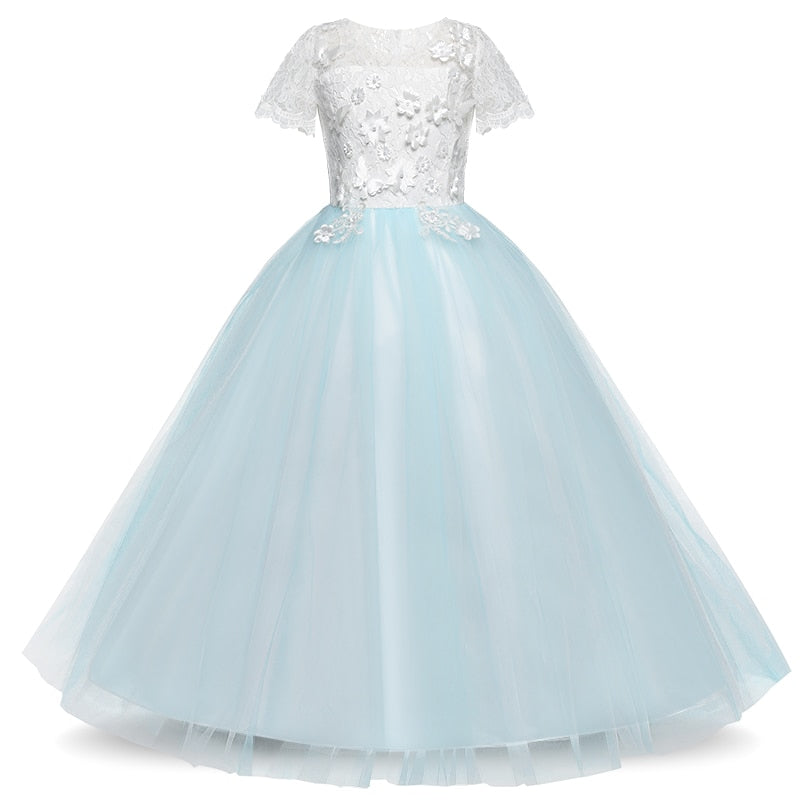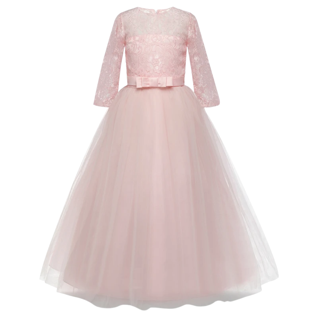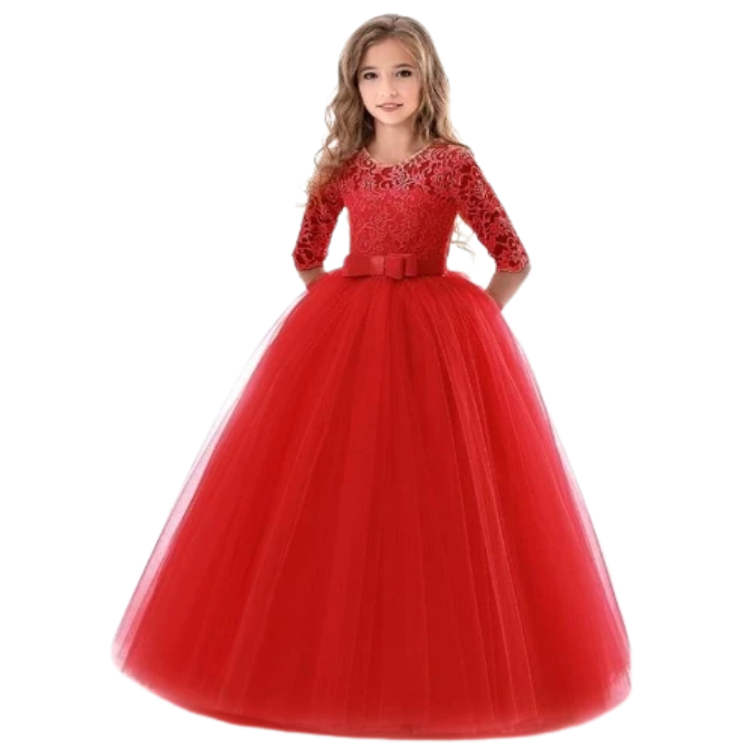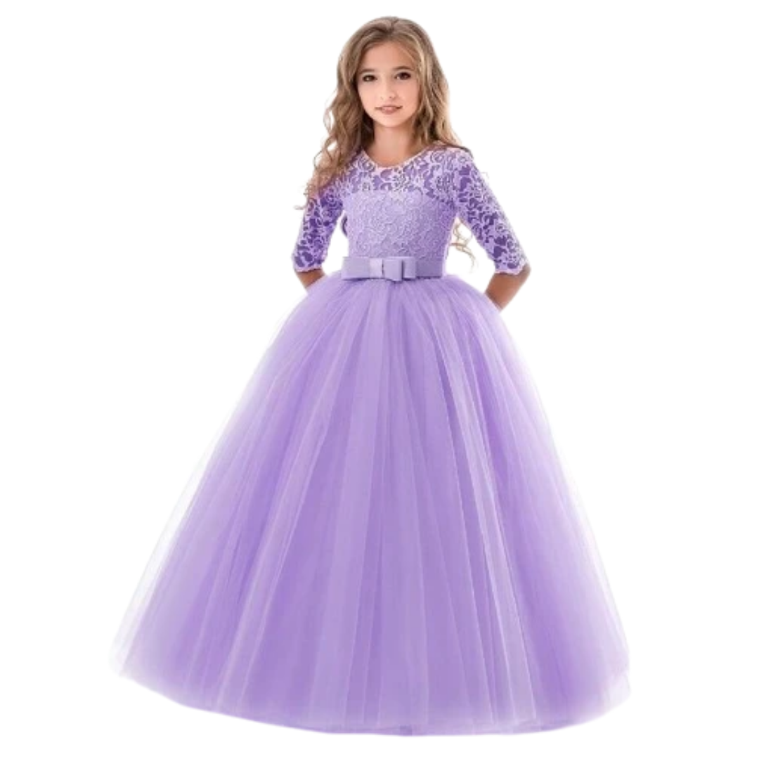 Para cada ocasión especial, nuestra hija merece ser el centro de atención para lucir notablemente hermosa con el vestido que usa. Aquí está nuestro vestido largo princesa con lazo y encaje para brindarle a su hija esa elegancia clásica de belleza que fascina a la multitud. Un conjunto sencillo pero notablemente magnífico para un evento especial.