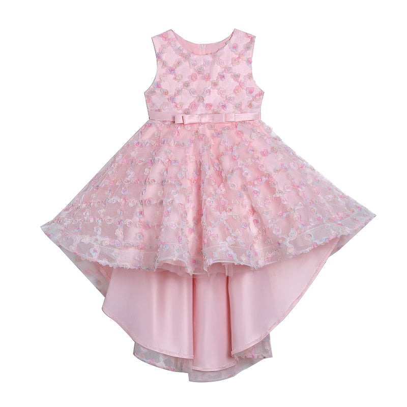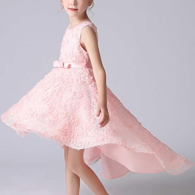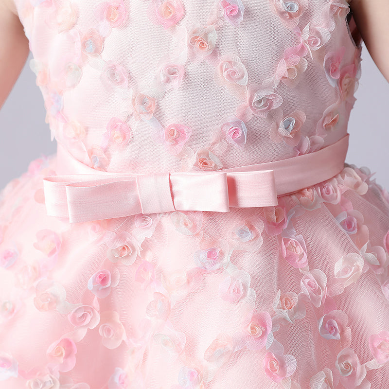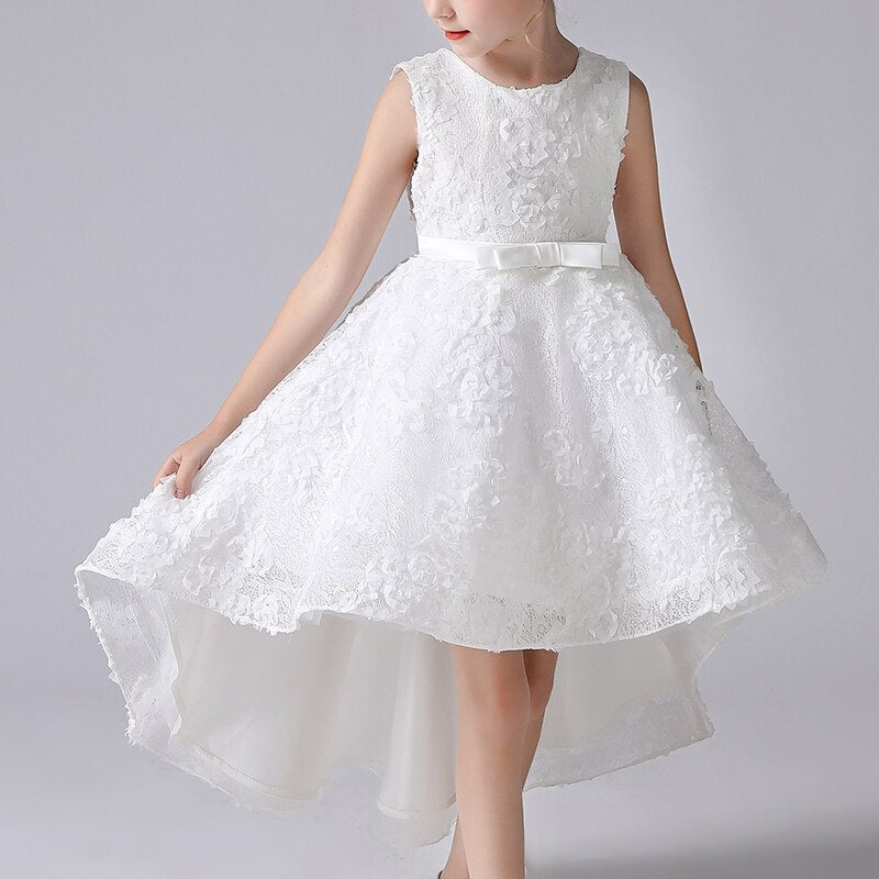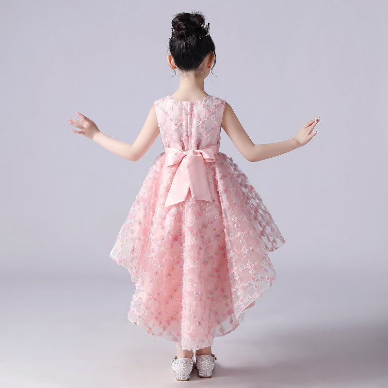 Vestido de princesa con espalda larga y bordado completo con flores pequeñas