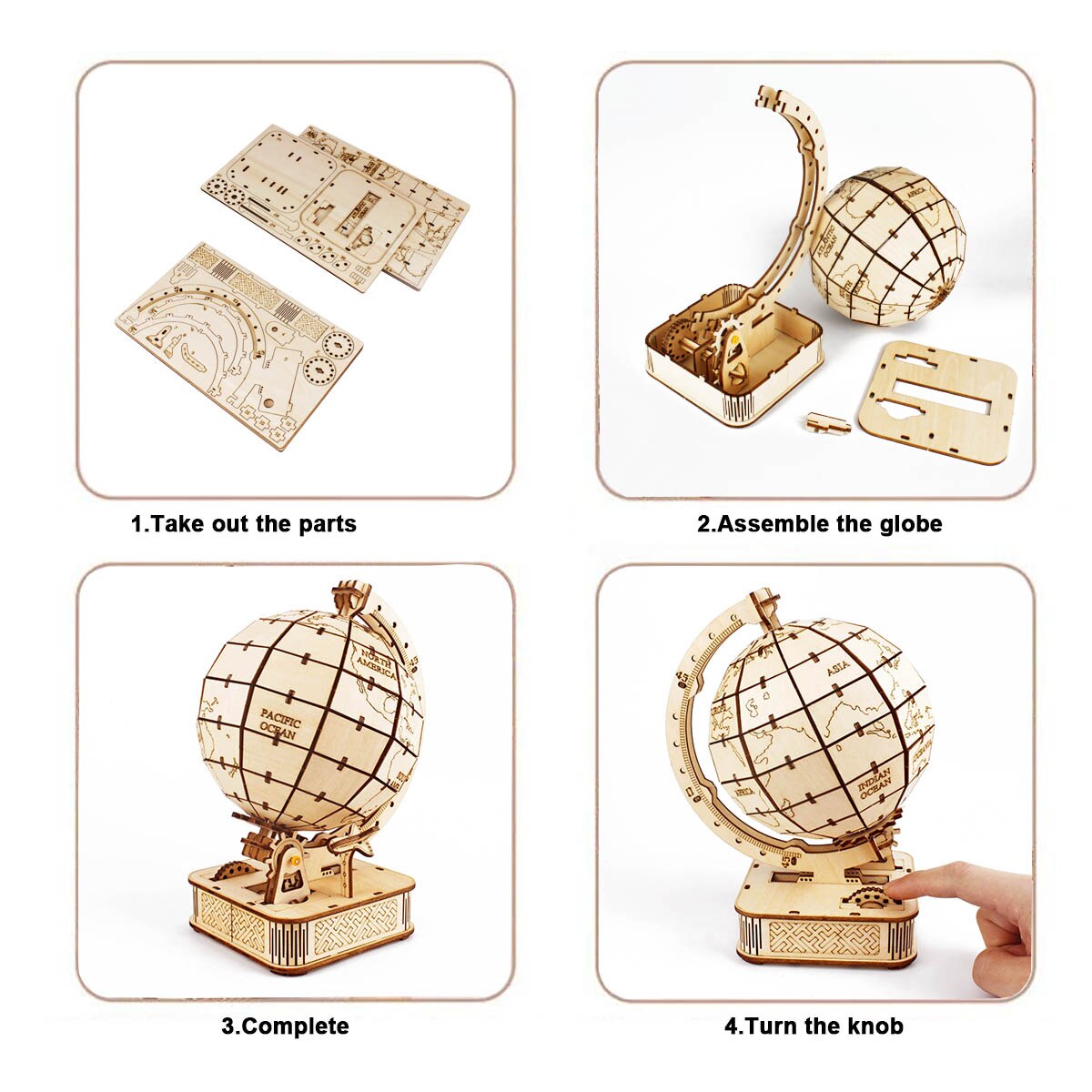 Este es un rompecabezas de madera 3D de globo cinético DIY con soporte. Es un gran juguete educativo para niños y adultos. Reúna todas las piezas y aprenda más sobre el mundo.