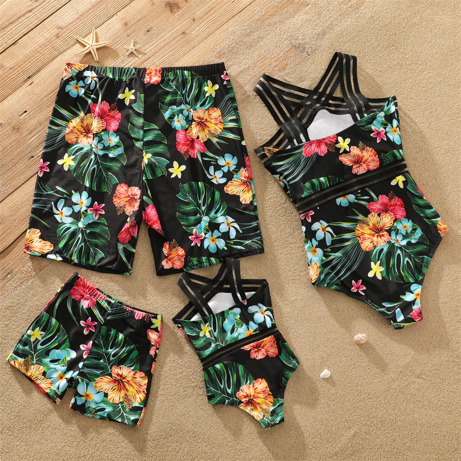 Coconut Tree Print Family Matching Swimwear: Shorts & One-Piece Suit