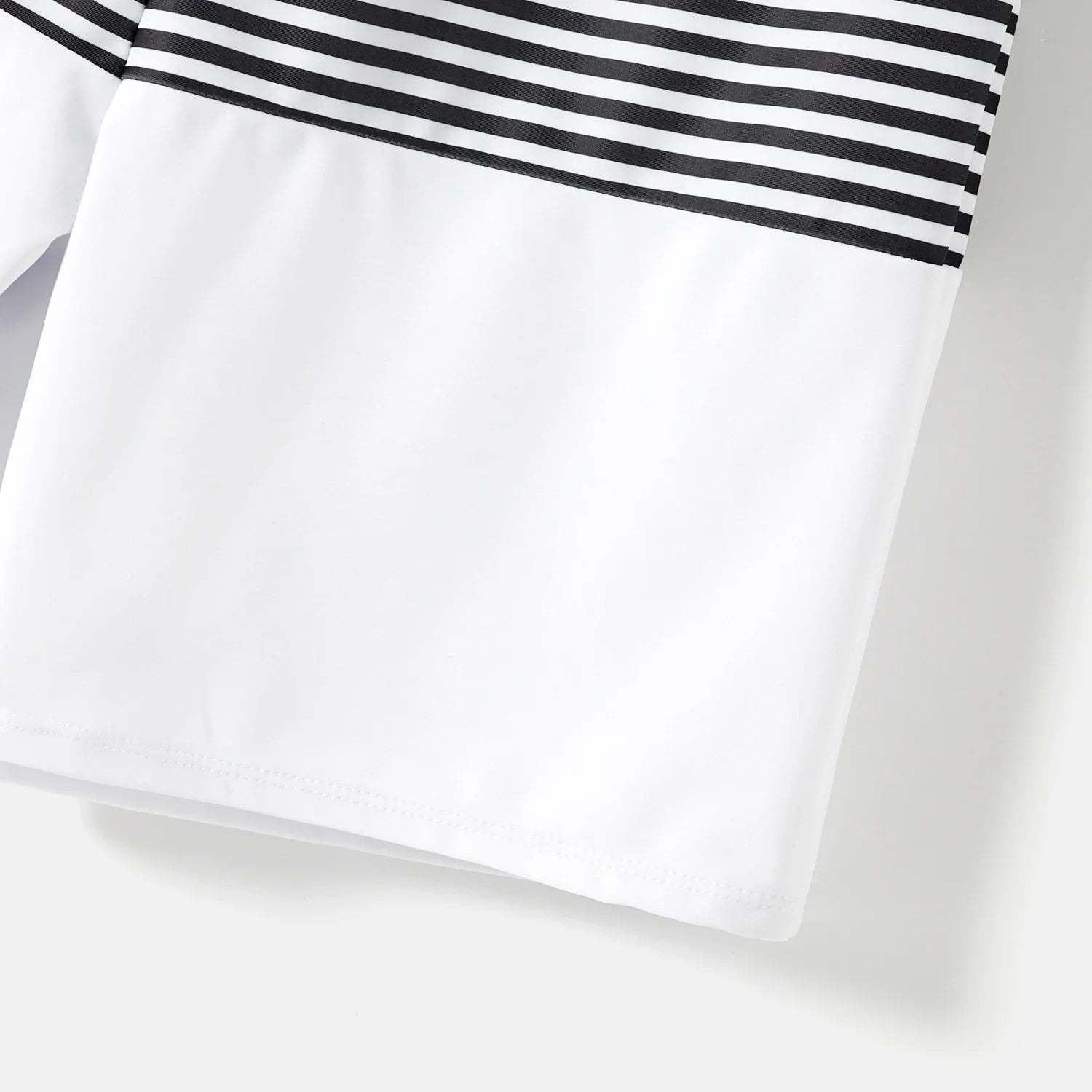 - Chic Design: Our swimwear sets feature one-shoulder swimsuits for women and girls, paired with stylish striped trunks for men and boys.