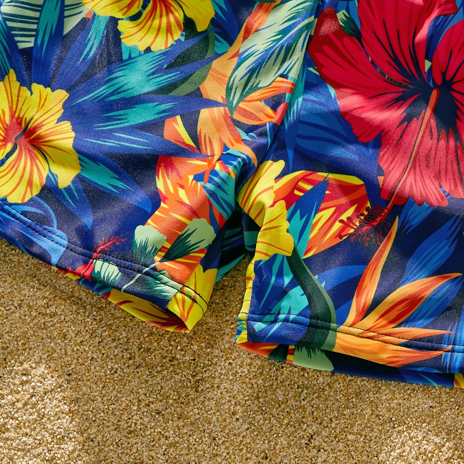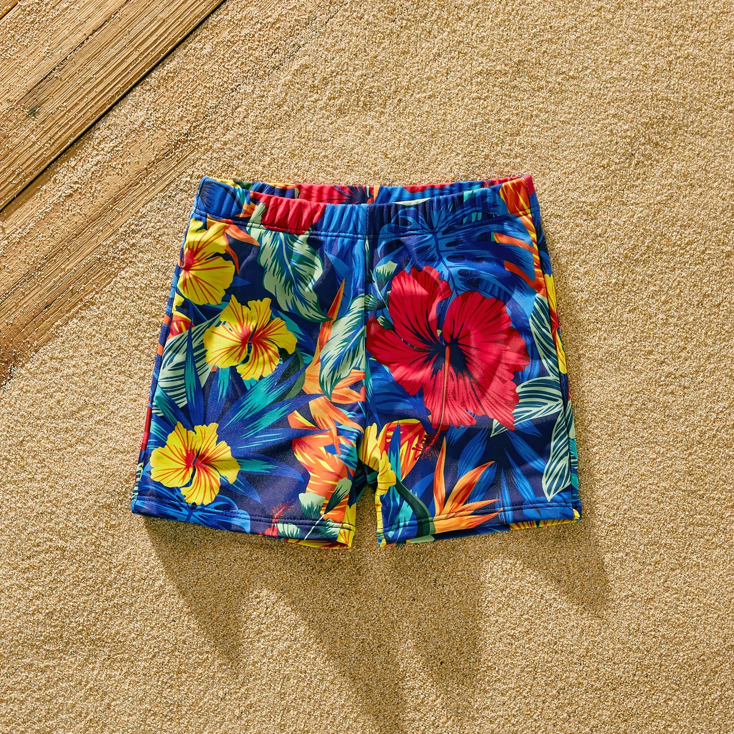 Family Matching: Solid Scallop Two-Piece & Floral Trunks