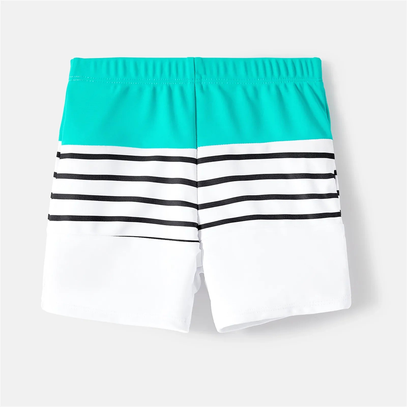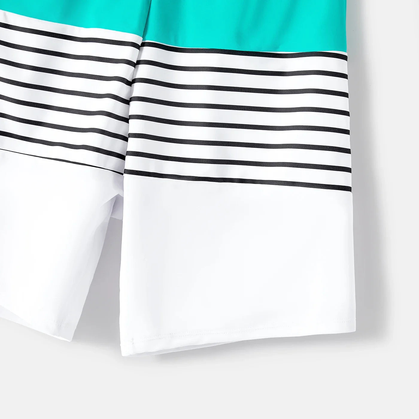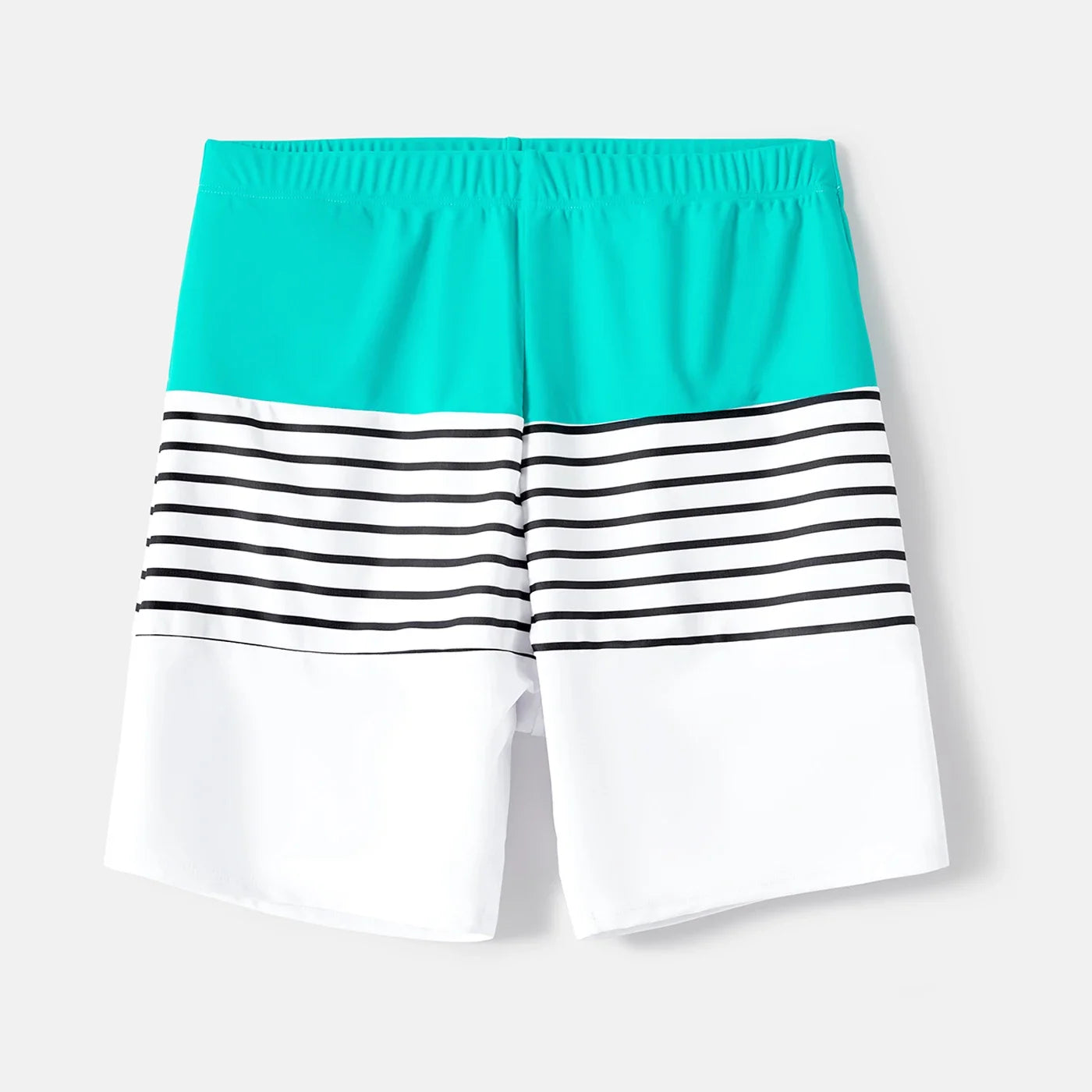 Family Matching Swimwear: Striped One-Piece & Colorblock Trunks, Summer Ready
