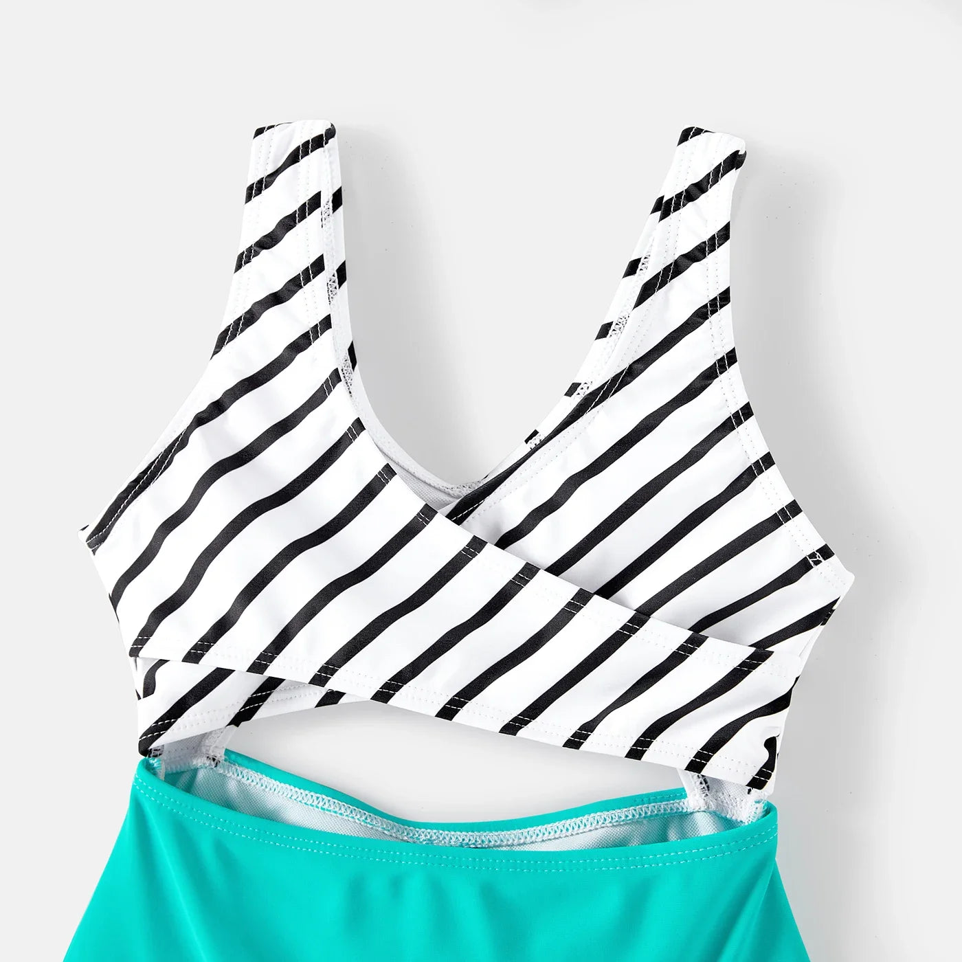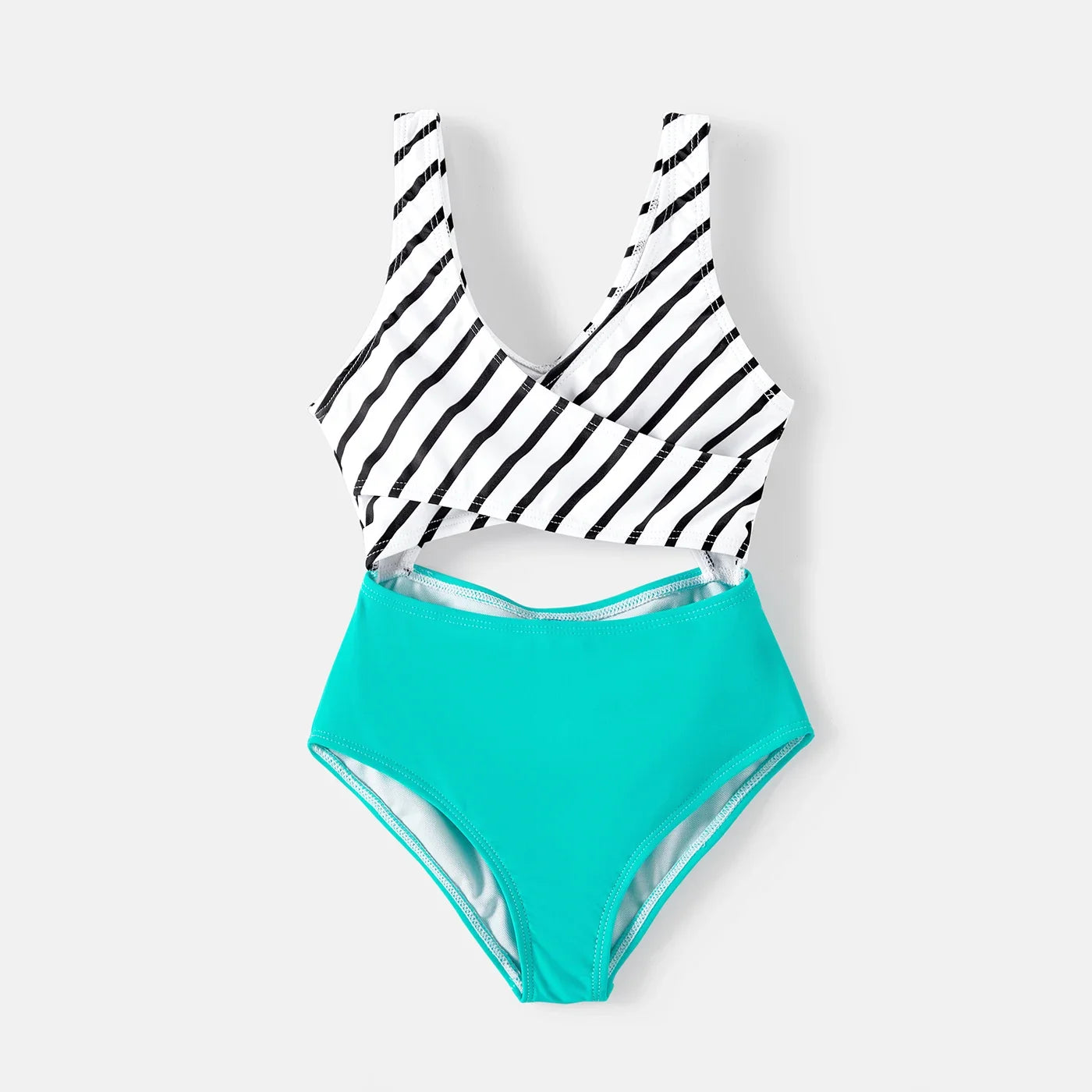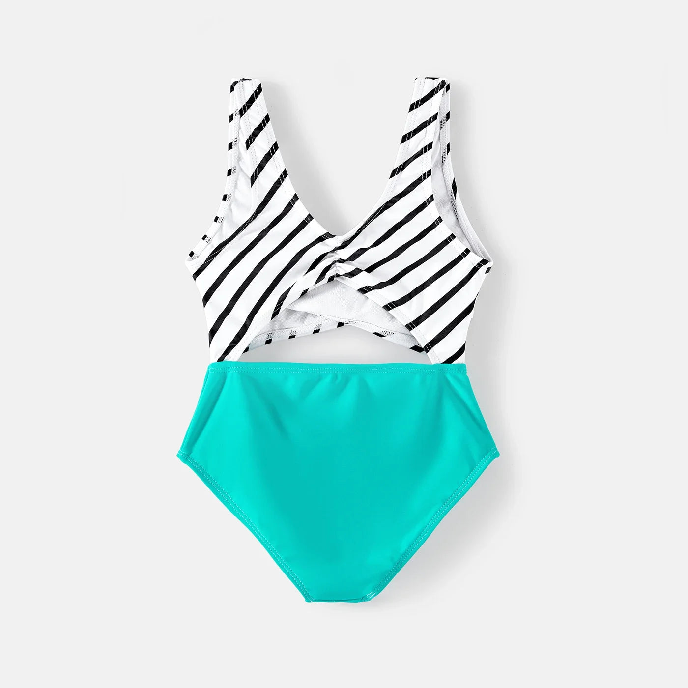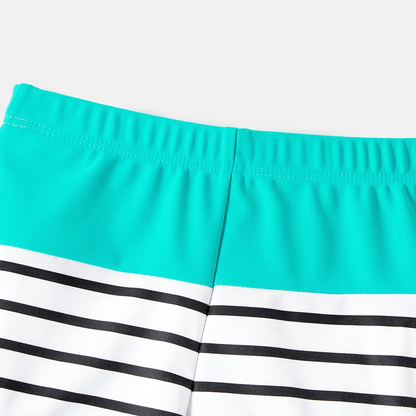 Family Matching Swimwear: Striped One-Piece & Colorblock Trunks, Summer Ready