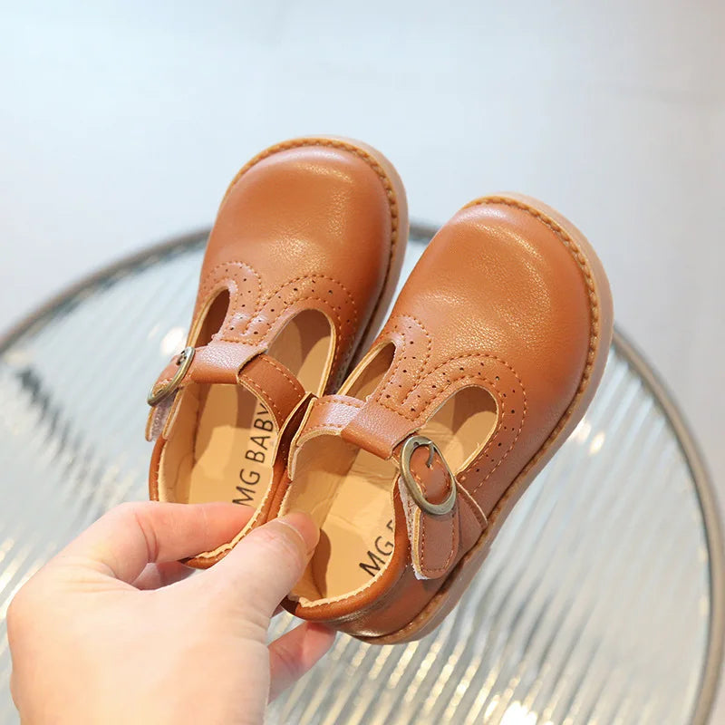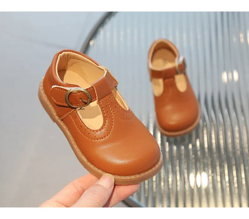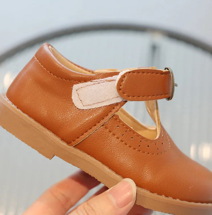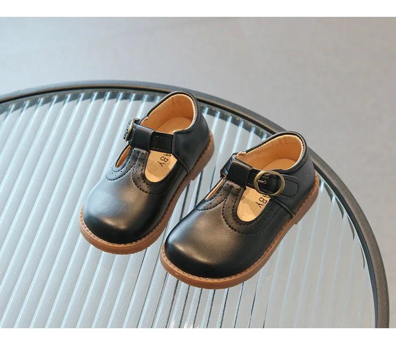 Elevate your little girl's footwear collection with our breathable and stylish T-Strap Leather Flats. Order now and let her step out in style!