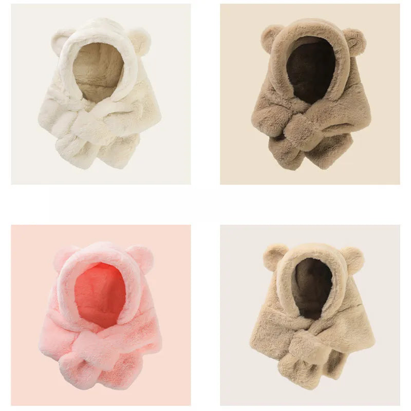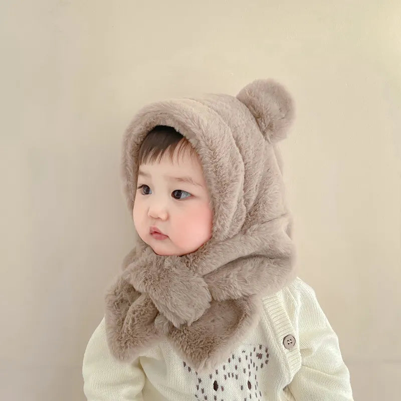 Bufanda con gorro de oso de invierno: gorros de piel sintética para niños