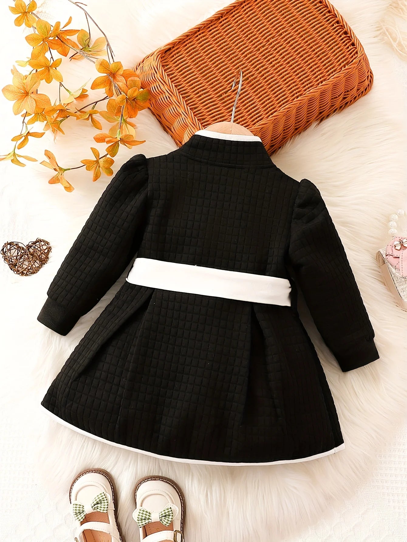 Chic Design: This dress set features a timeless black and white color contrast, adding a touch of elegance to your baby's wardrobe.