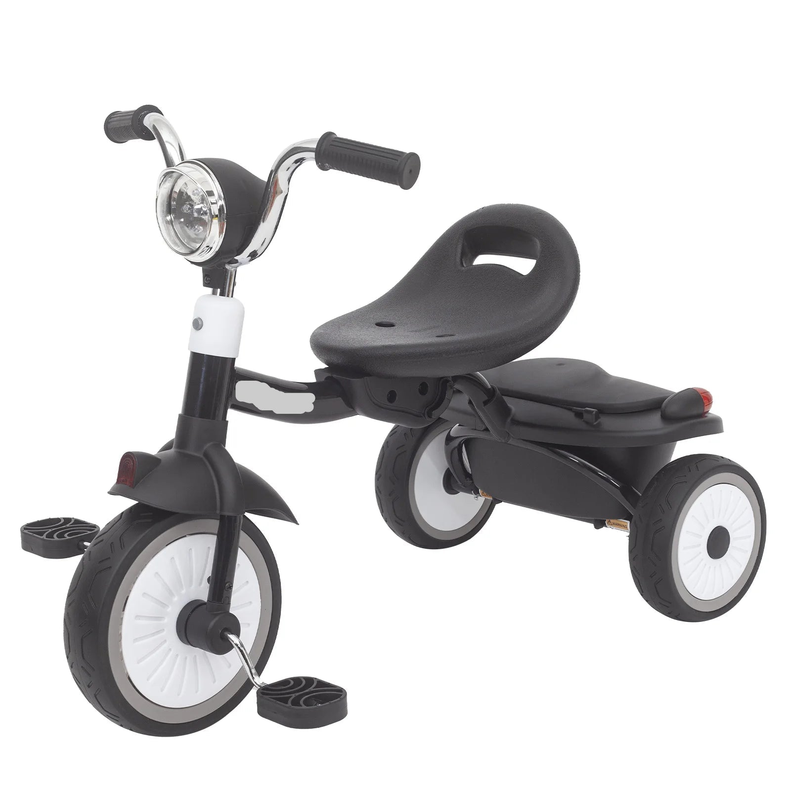 Baby Foldable Tricycle Trike with Pedals – Shock-Absorbing PU Wheels, Cool Lights, Adjustable Seat – First Walker Bike for Kids Ages 1-5